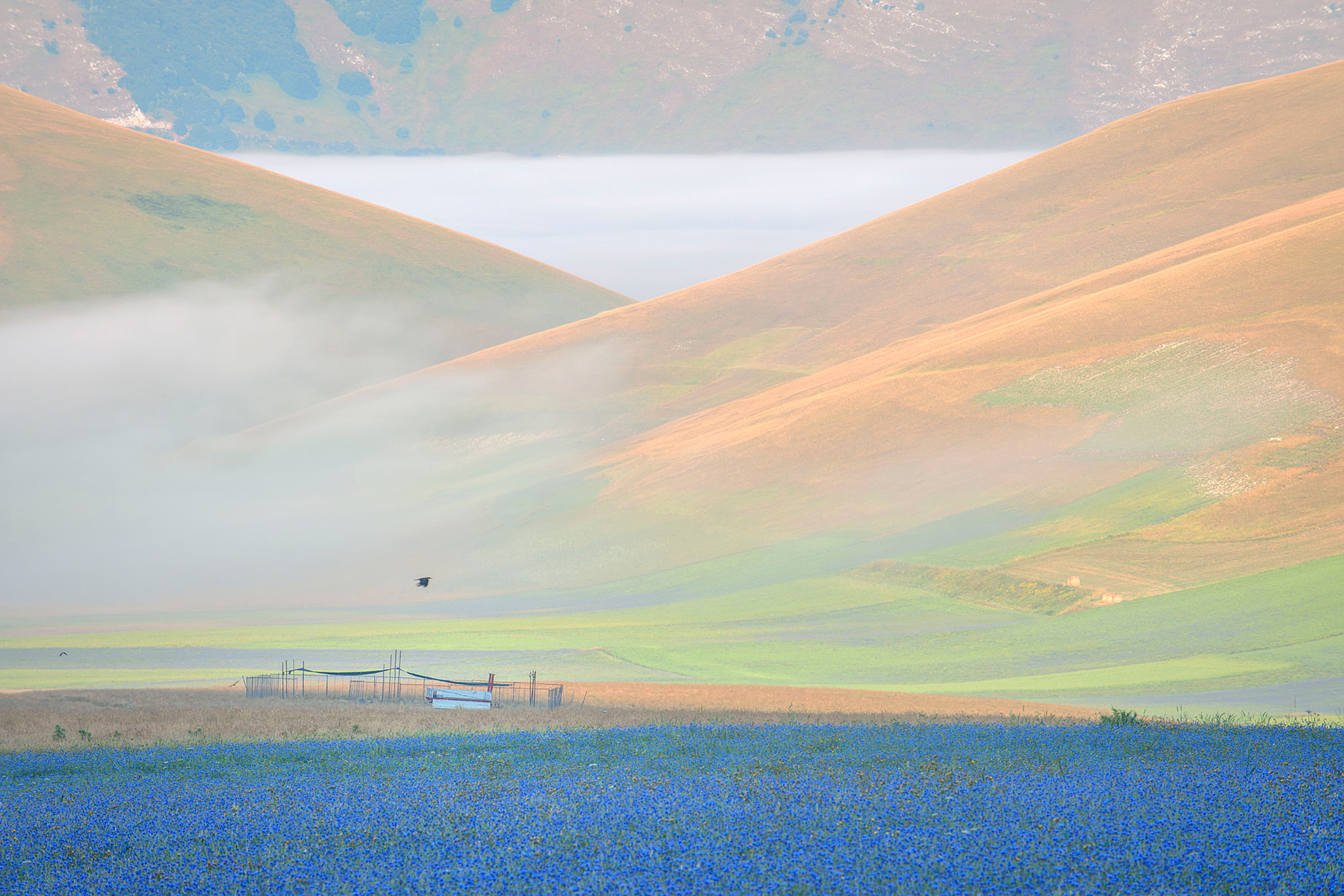 | Uno splendido affresco della piana di Castelluccio... una magia che ogni volta ti cattura...splendidi i morbidi colori acquarello ...per la composizione vorrei proporti una mia visione con un taglio superiormente al limite della linea di nebbia per avere( mia sensazione personale ) maggiore uniformità strutturale... |