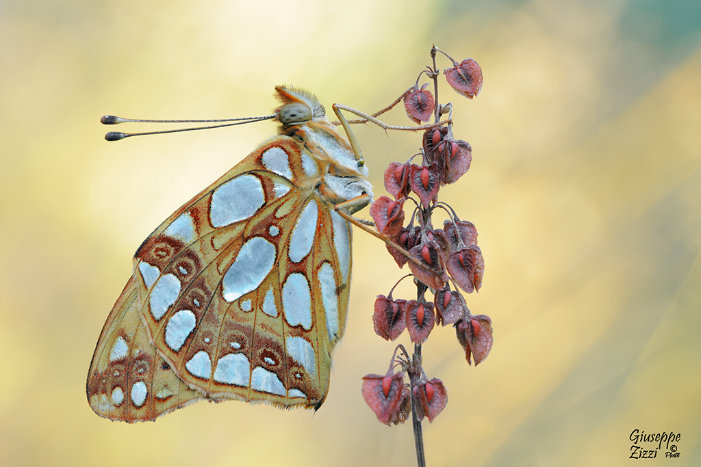 | una farfalla ostica da fotografare,per via dei colori e delle macchie argentate sulle ali, hai fatto un ottimo lavoro, il posatoio è splendido    |  |