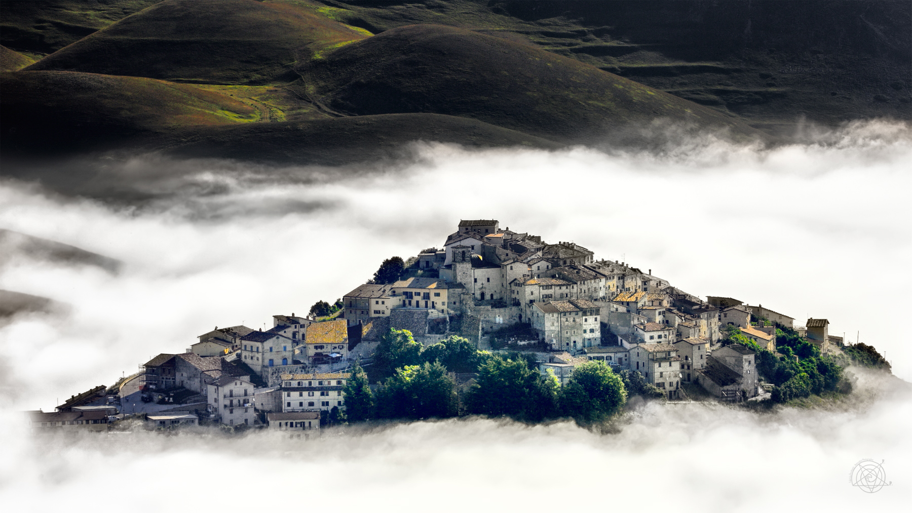 sembra un'isola che galleggia nella nebbia questo borgo. Anch'io forse l'avrei vista più morbida ma mi piace anche così