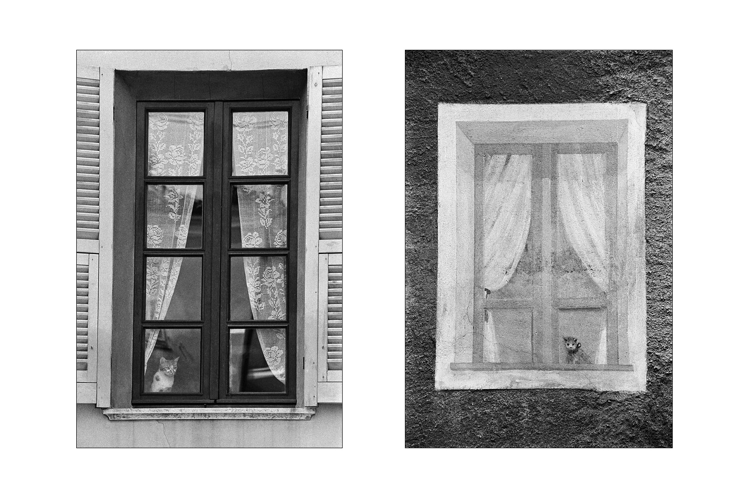 Tratti diafani per regalarci una realtà ideata, la chicca i due mici contrapposti.