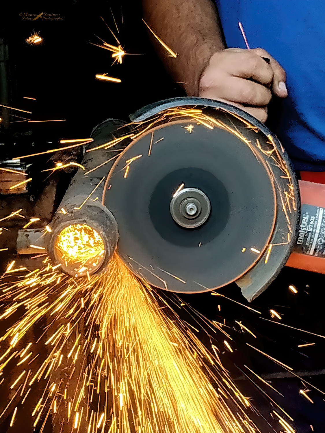Grazie Cesare e Rossella per l'interesse dimostrato...uno scatto senza pretese fatto al volo col cellulare, ma appunto mi piaceva questo dettaglio della cascata di scintille provocata nel taglio.
