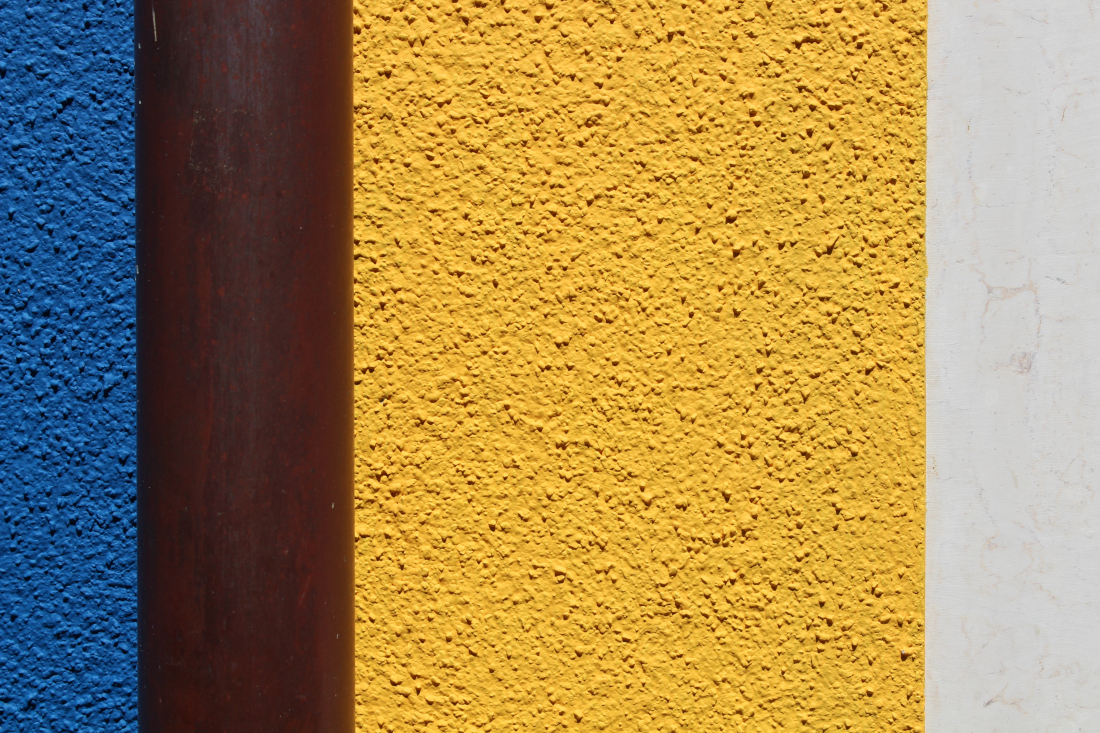 L'idea di base e' buona,pero' trovo poco felice ,sia cromaticamente che dal punto di vista compositivo, l'inclusione del palo/gronda che dir si voglia. Non fa da filo conduttore tra il freddo del blu sulla sx ed il senape sulla destra e non crea contrasti interessanti con nessuno dei due colori. Luce "dura ma giusta" che rende bene la texture dell'intonaco a buccia d'arancia.