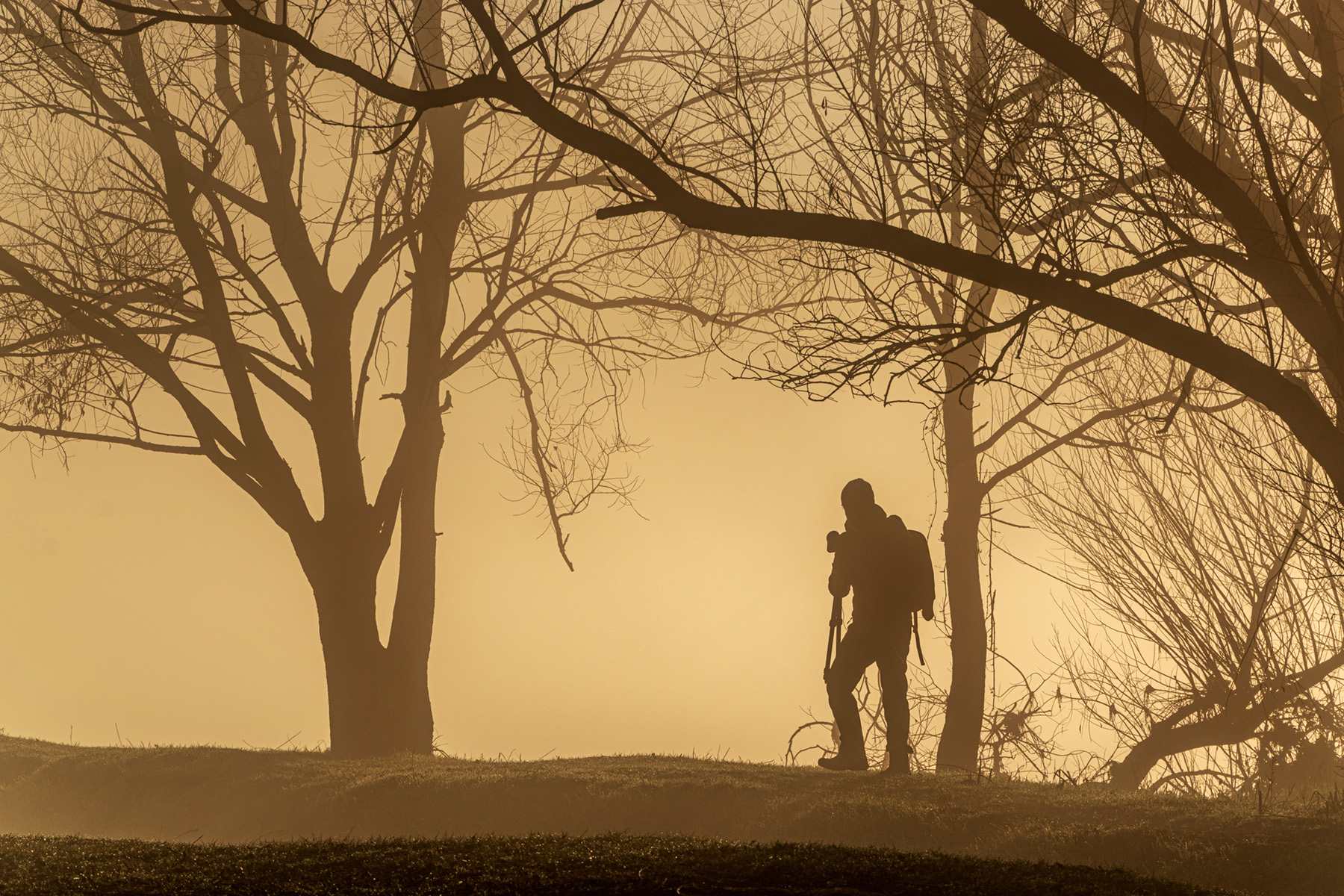 Una dominante di colore della luce calda su un tono fra il dorato e il Cognac che rende particolare questa silhouette del fotografo che si appresta all'azione. bella. Ciao, Tiziano  |