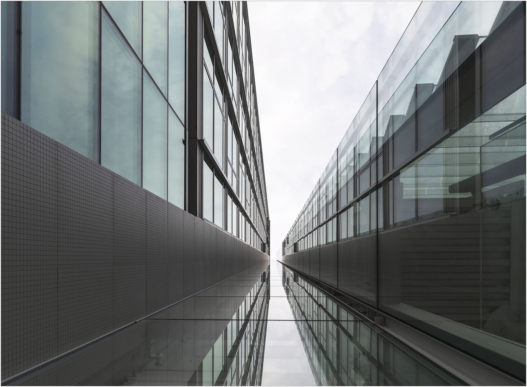 Se si socchiudono gli occhi sembra proprio un percorso tra due edifici in un giorno di pioggia Immagine intrigante in una bella tonalità grigiazzurra; gradevole l’asimmetria.