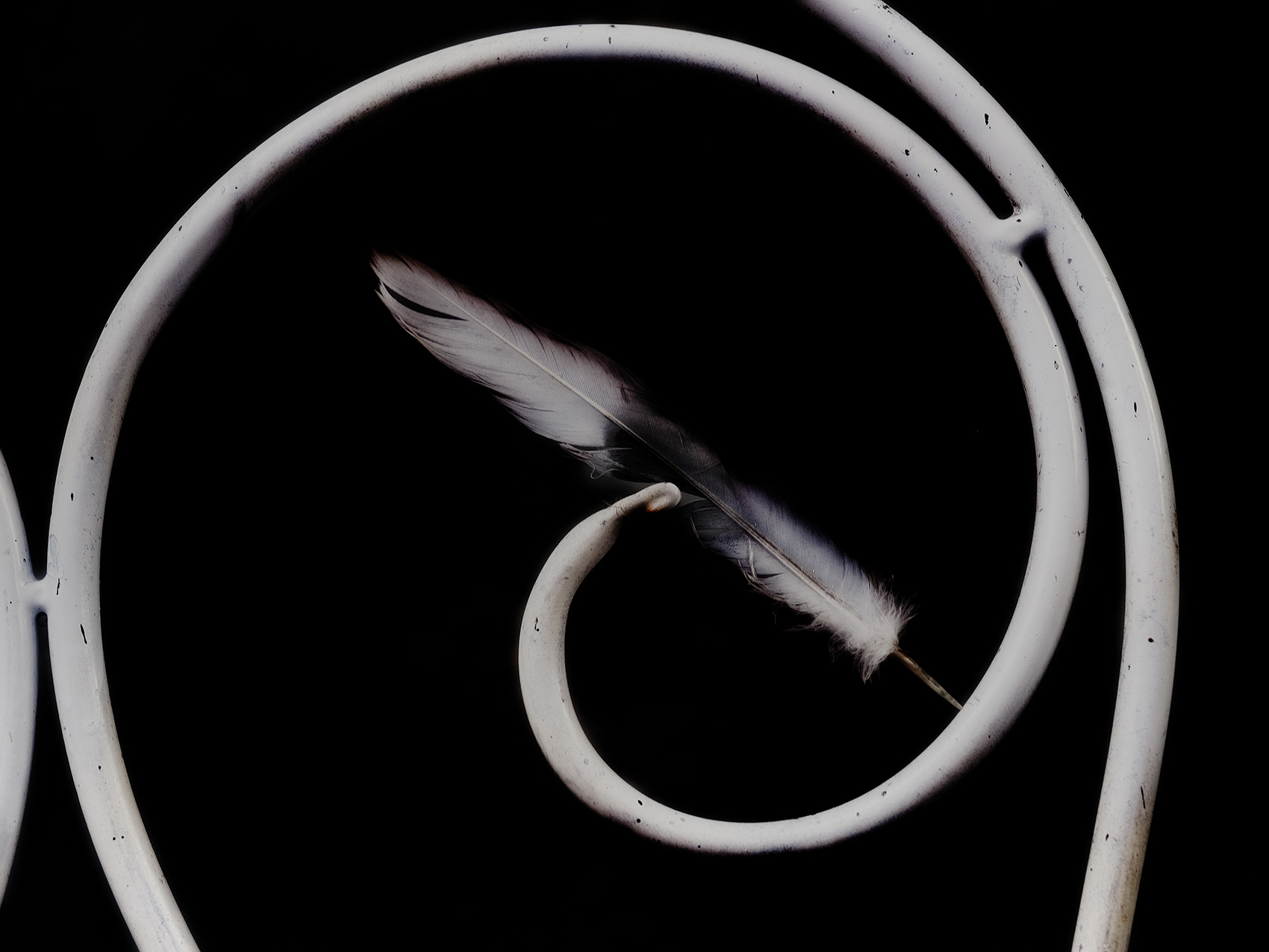 | Bella questa piuma equilibrista che segna la 16:50 sul quadrante di un orologio a spirale. |