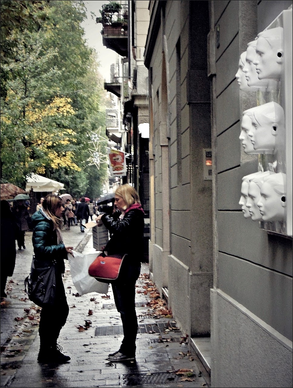E'si quei volti sul muro .. stanno ascoltando ed osservando il dialogo delle due signore.. Un ottima immagine e proposta.