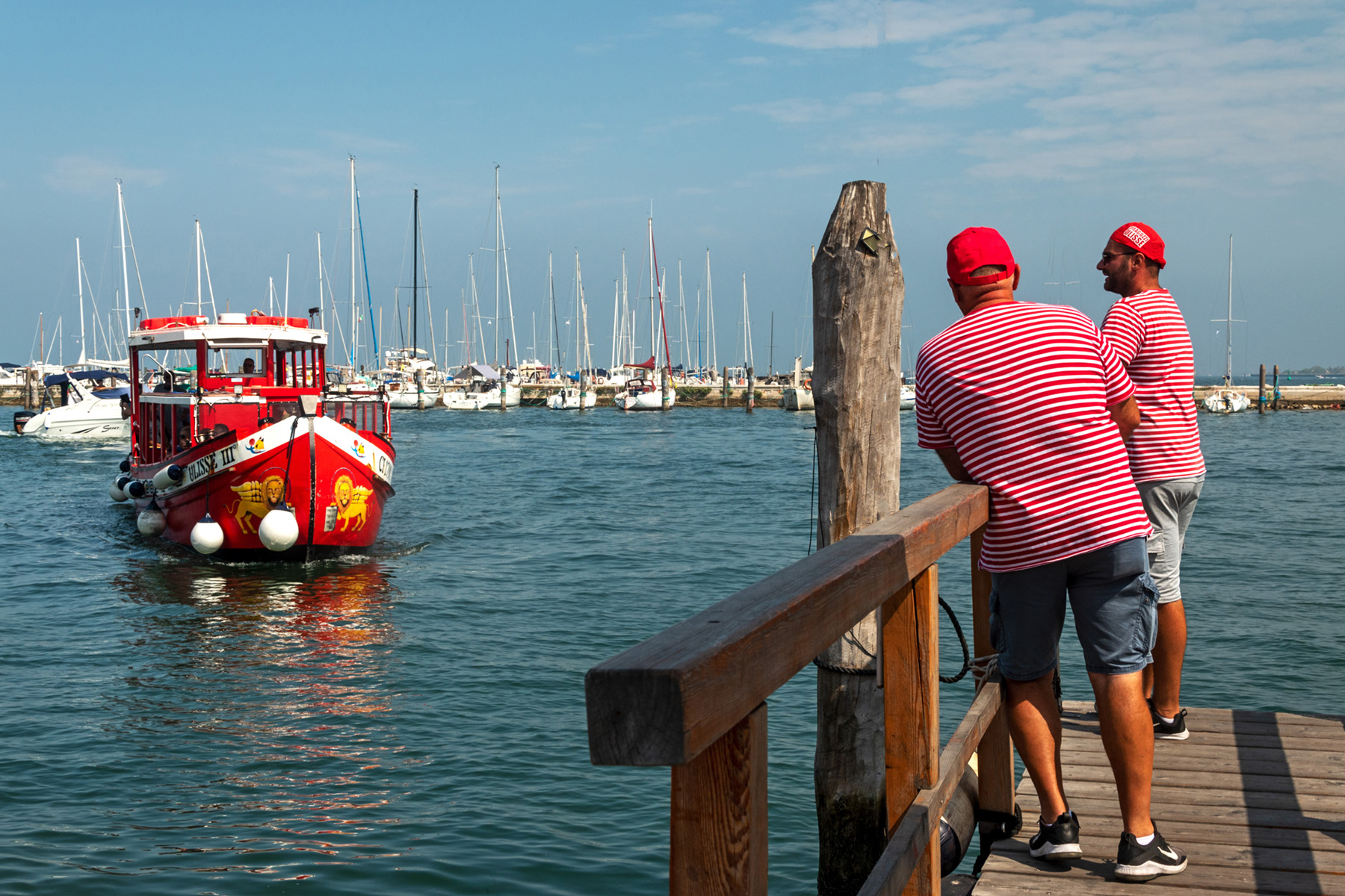 I due personaggi attraggono l'attenzione , con le loro divise sgargianti e appoggiati sulla passarella, in diagonale, che trasmette un moto dinamico e participativo alla scena. I loro sguardi sono diretti verso il vaporetto che richiama l'attenzione anche per lo stesso colore delle divise. Il resto è relegato sullo sfondo, sembra di vederla questa scena. Mi piace _________________ Giuseppe |