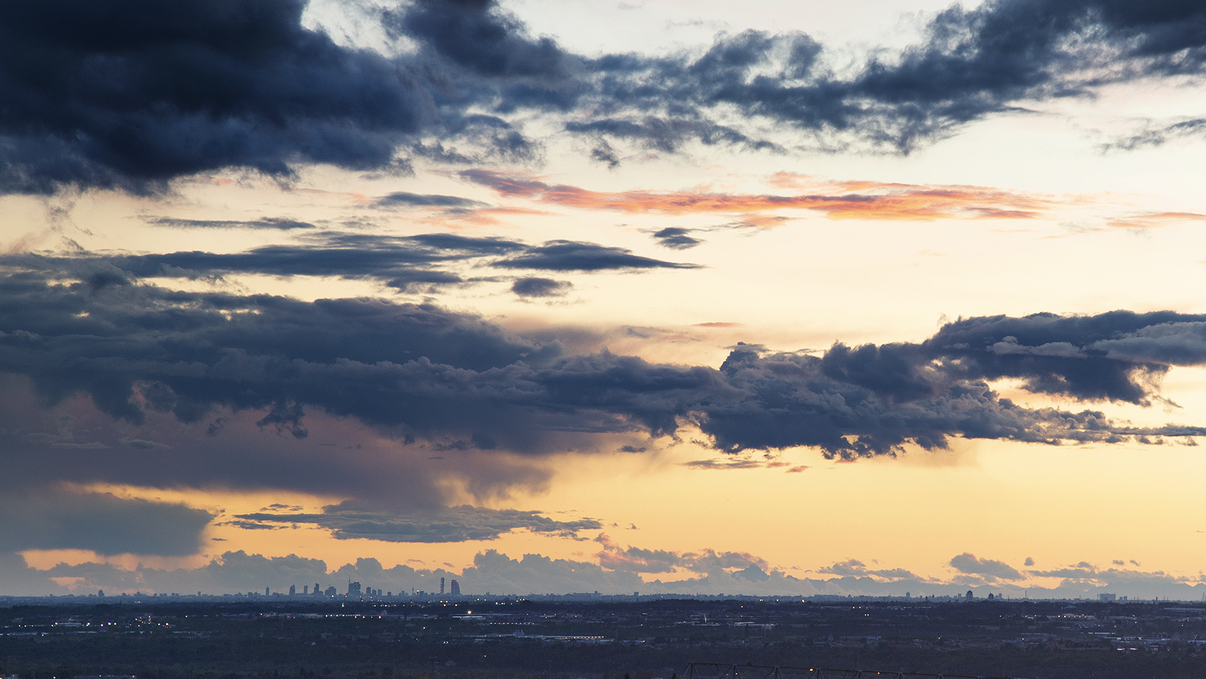 Bello skyline con lo "sky" stupendo e giustamente preponderante rispetto al "line" degli edifici (ma ben leggibili) ,che rendono le dimensioni e la vastita' del corpi nuvolosi. Contrasti forti e colori bellissimi, lavorazione PP molto fine.