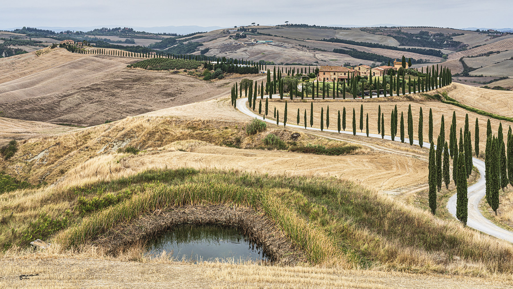 Grande profondità che ci porta dalla pozza d'acqua ai lontani casolari percorrendo la tortuosa stradina puntellata di cipressi.Ottima composizione,bello il colore. Ciao,Sergio. _________________ Sergio Demitri https://www.flickr.com/photos/124946035@N02/ |