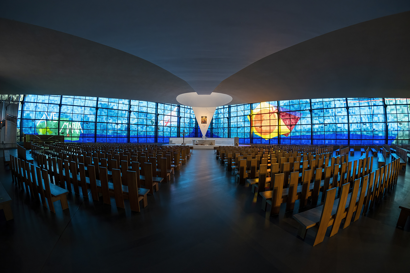 Impossibile resistere a questo spazio dedito alla fede tra colori e luci soffuse e trasparenze.