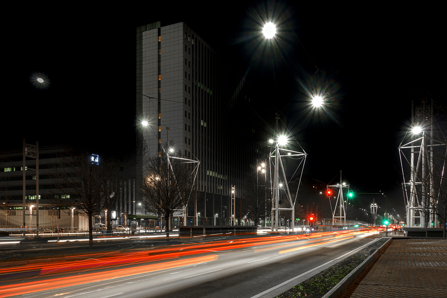 Bel notturno, piacevoli le luci dei lampioni e del semaforo!