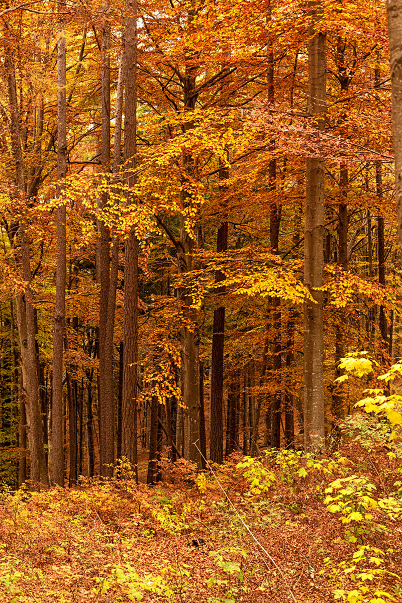 Un pieno autunno quasi monocolore. Disturba un pochetto l'armonia della scena e del fotogramma quel piccolo rametto chiaro che centralmente dal basso sale un po' verso l'altro.