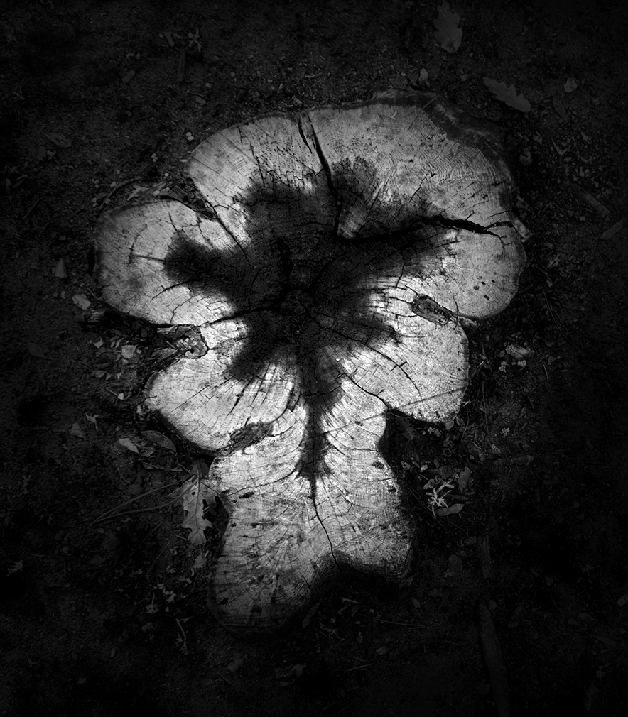 Particolare la forma di questa ceppa tagliata che credo si tratto di un pino. bella la luce e il modo in cui hai gestito la drammaticità in PP.