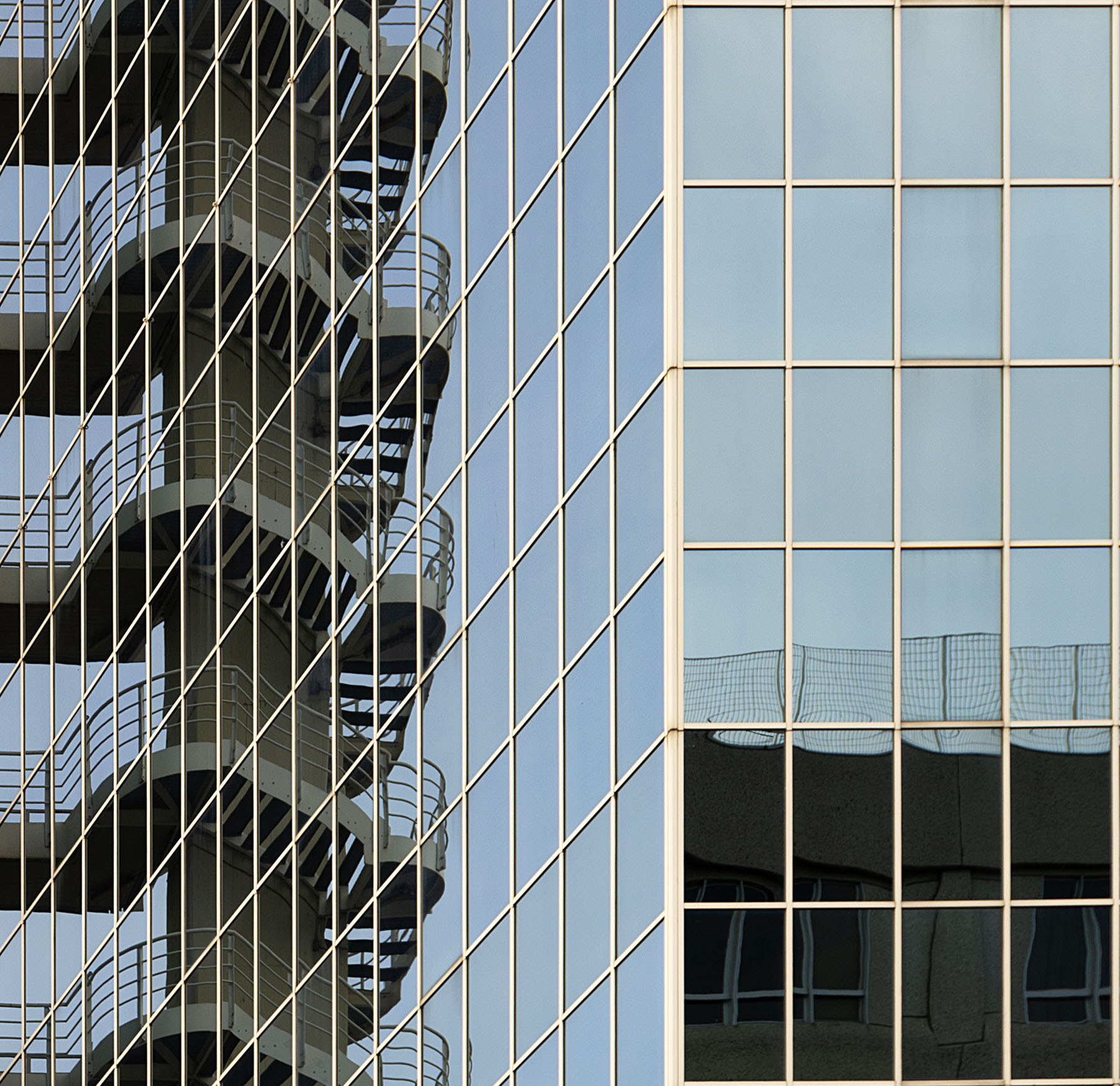 Bellissimo gioco di riflessi architettonici tra vetro e acciaio e realtà speculare.