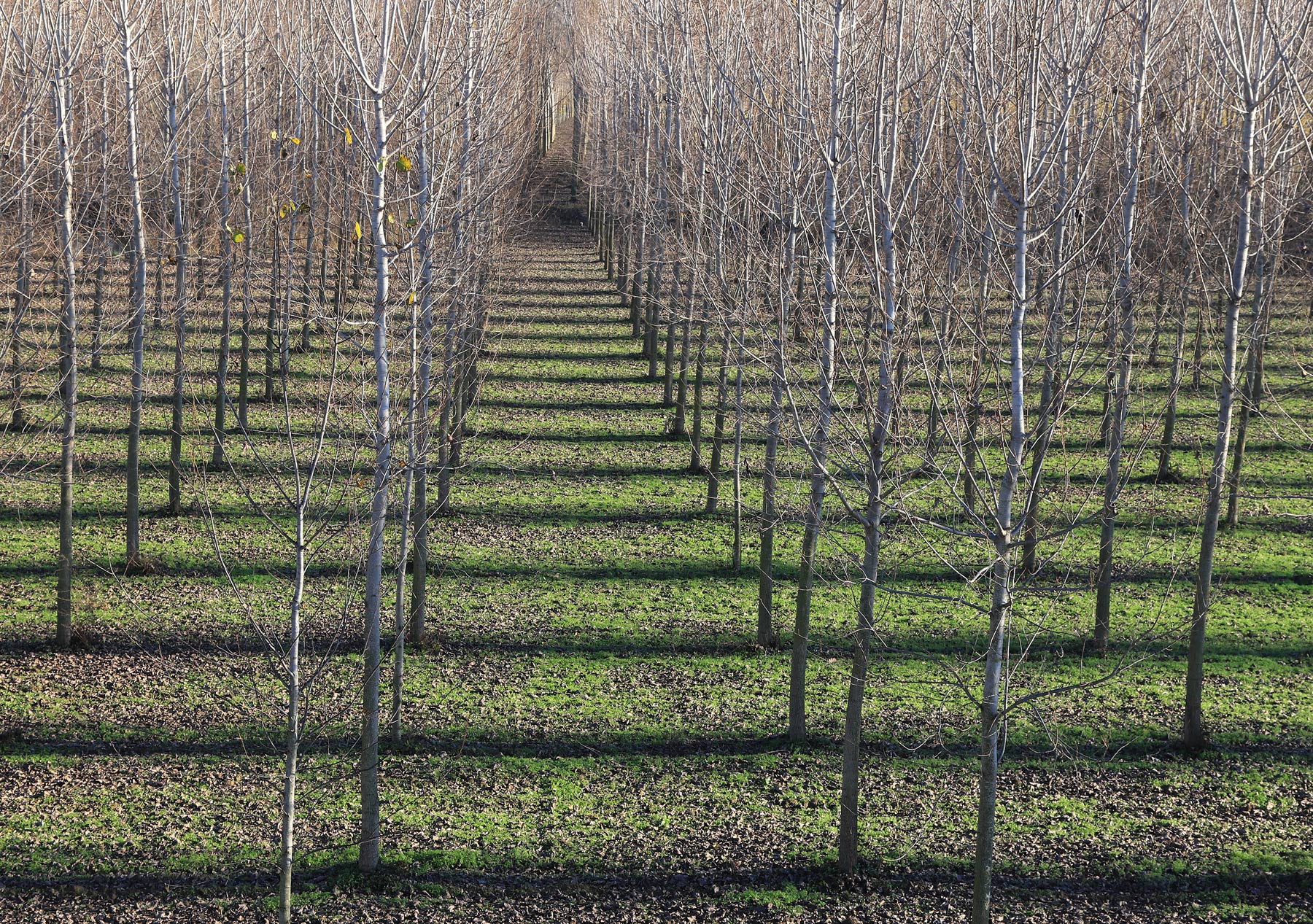 Tra righe e colonne questi giovani alberi sembrano elencati in una spettacolare composizione.