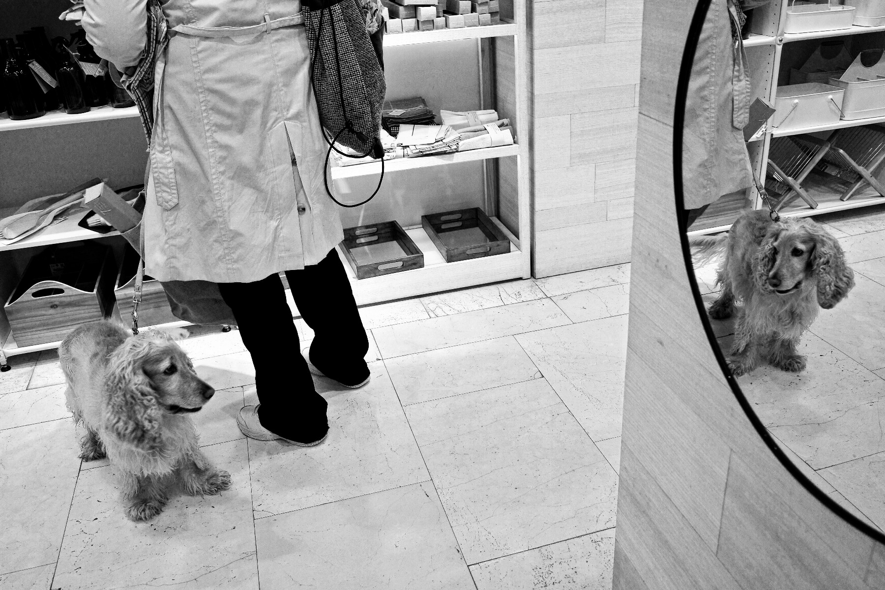 Molto bello il dialogo tra il cane ed il suo riflesso.Ottimo scatto in adeguato bn. Sergio.