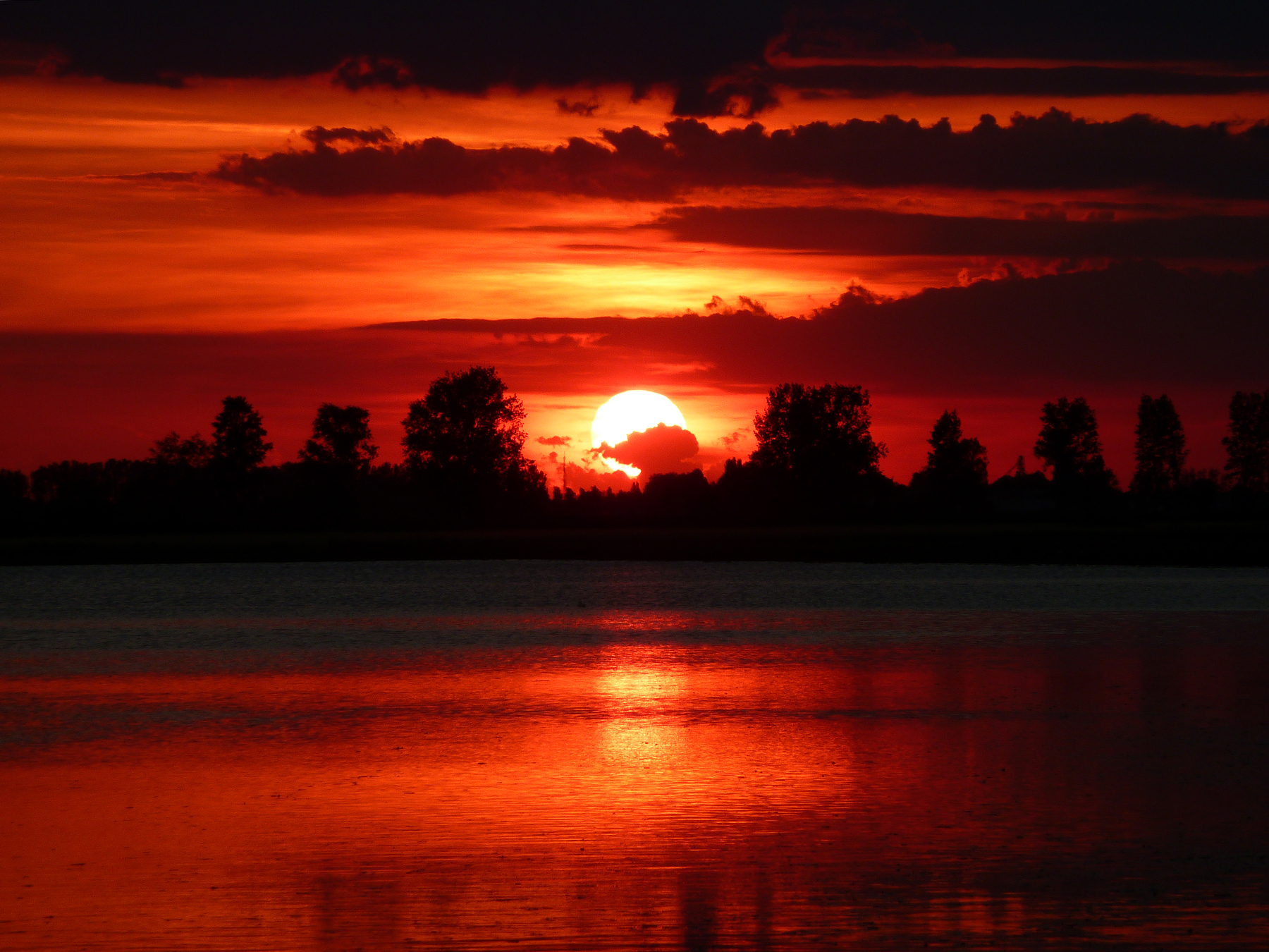 un tramonto infuocato in risaia, scattato con una compattina tascabile da pochi euro. In post ho solo raddrizzato, non ho saturato oltre, i colori spaccavano già di suo.