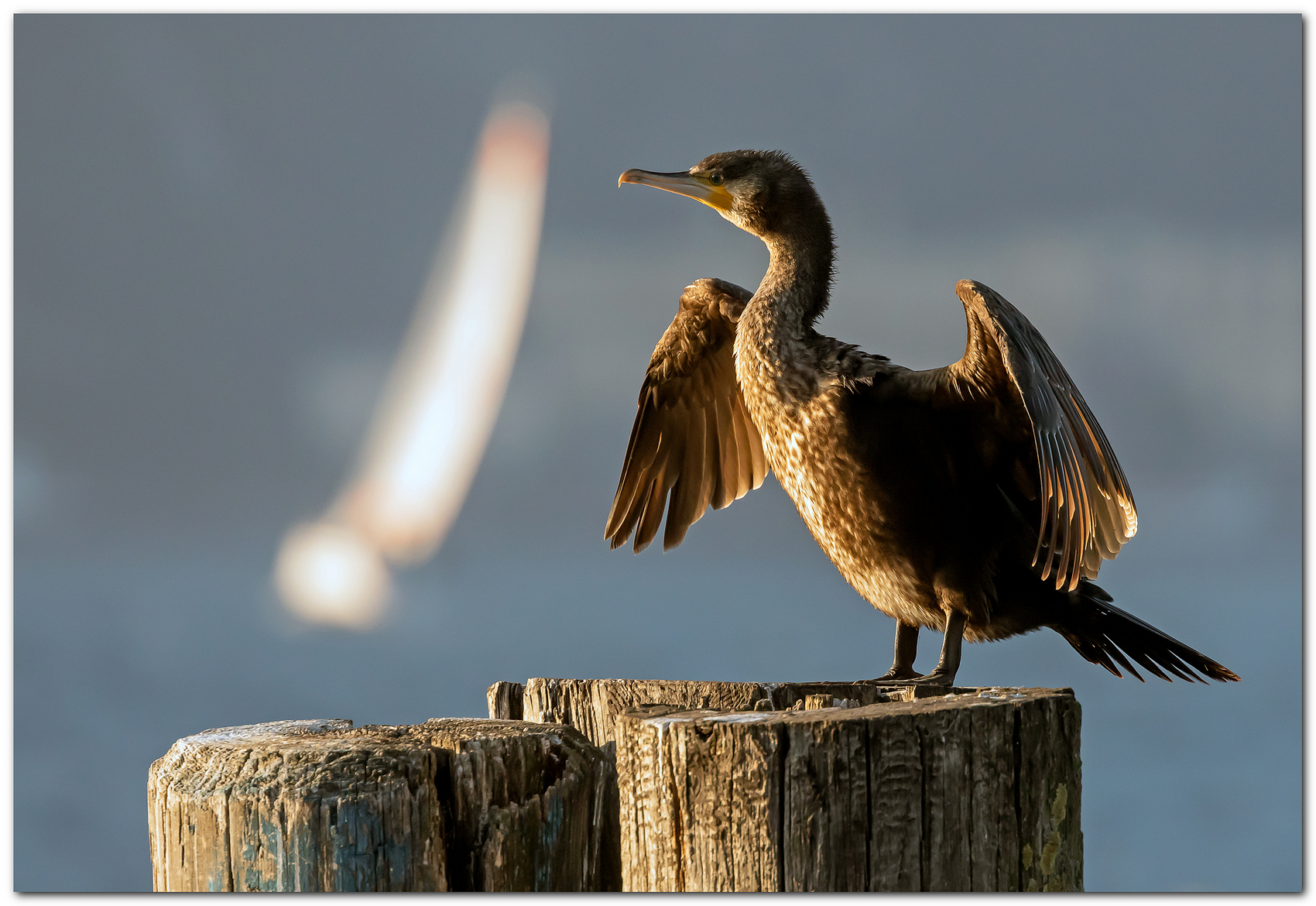 Immagine piacevole per la posa del cormorano e la luce che lo colpisce.