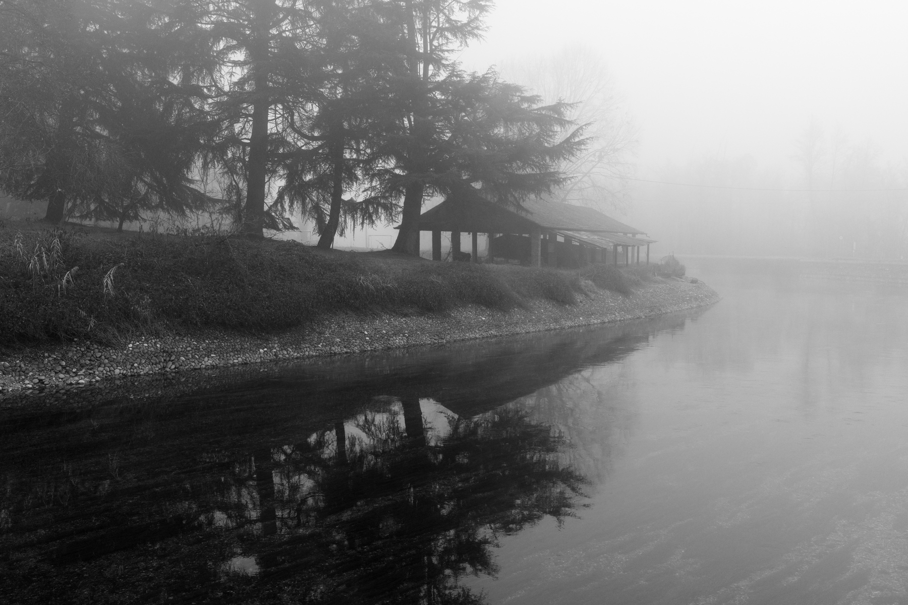 Gradevole composizione resa suggestiva dalla leggera nebbia e adeguato il bn delicato