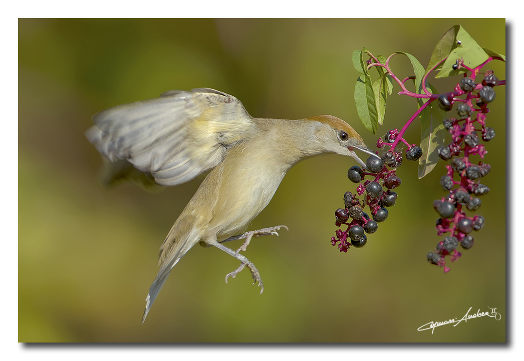 Il frullo d'ali, il congelamento in aria, il becco che afferra la bacca.