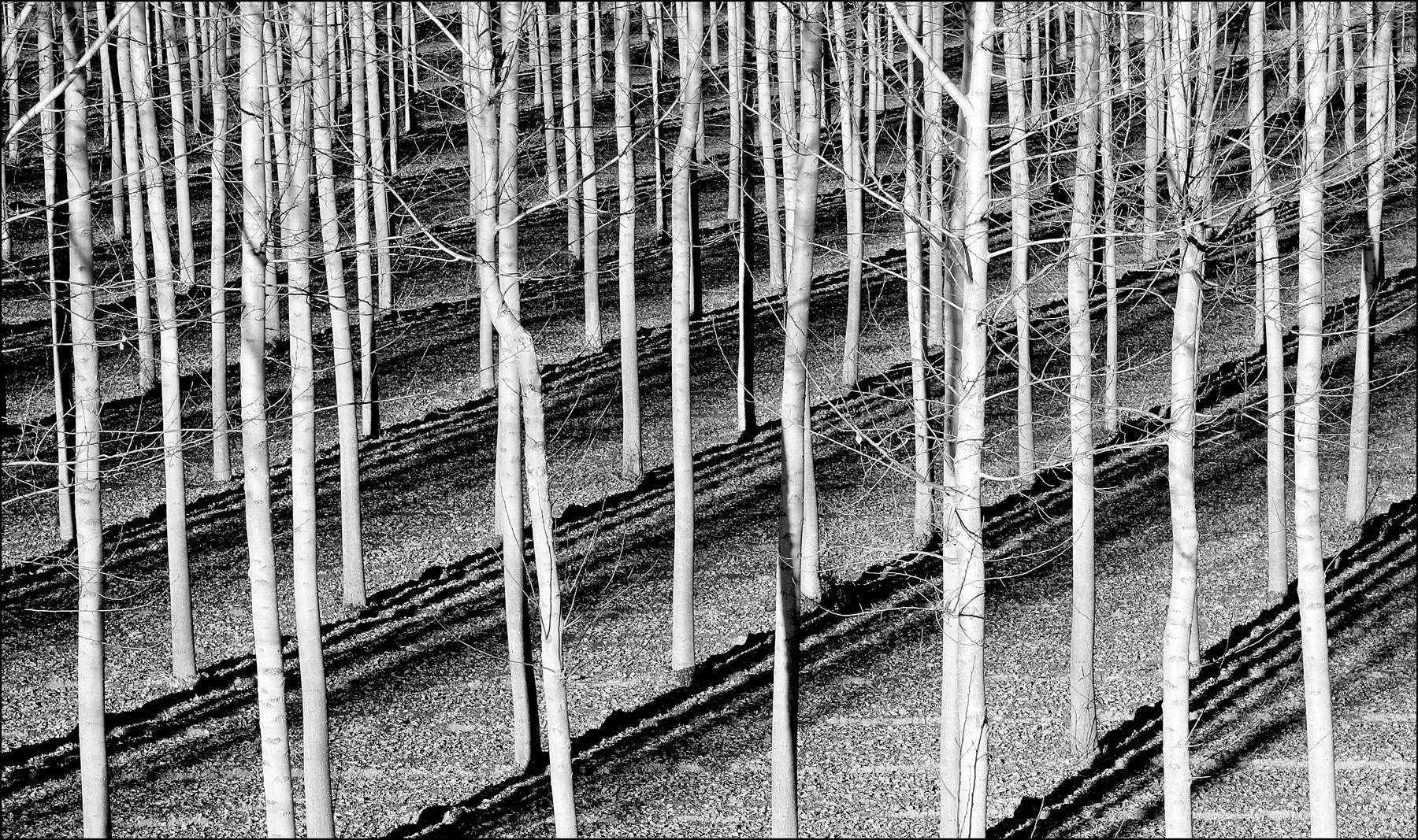 Geometrica e grafica, la mia tipologia preferita! Bello anche il bianco e nero granuloso e il groviglio di rami che la riconduce alla realtà Mi piace davvero molto