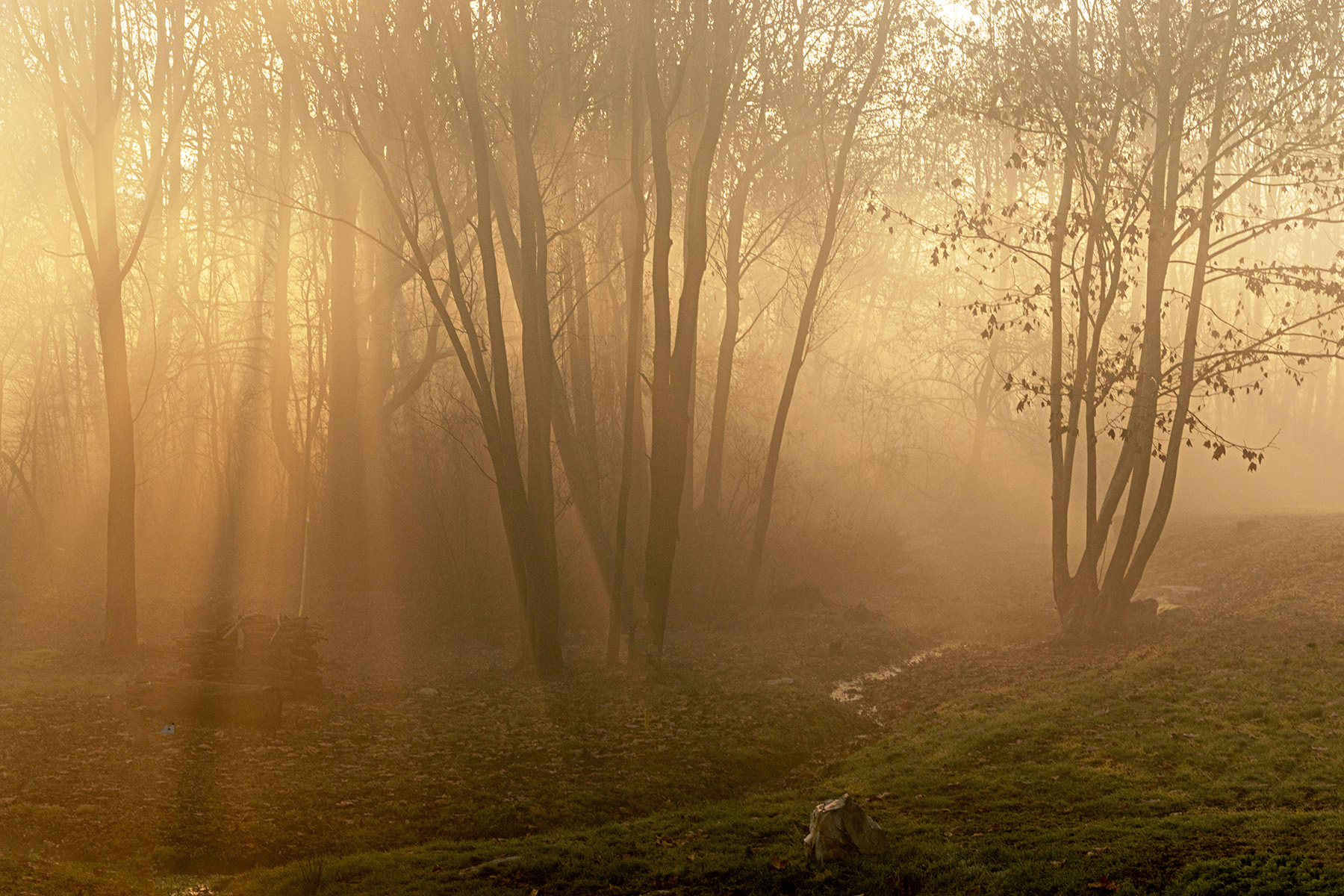 Quelle lame di luce che penetrano nel bosco ne fanno un'immagine onirica