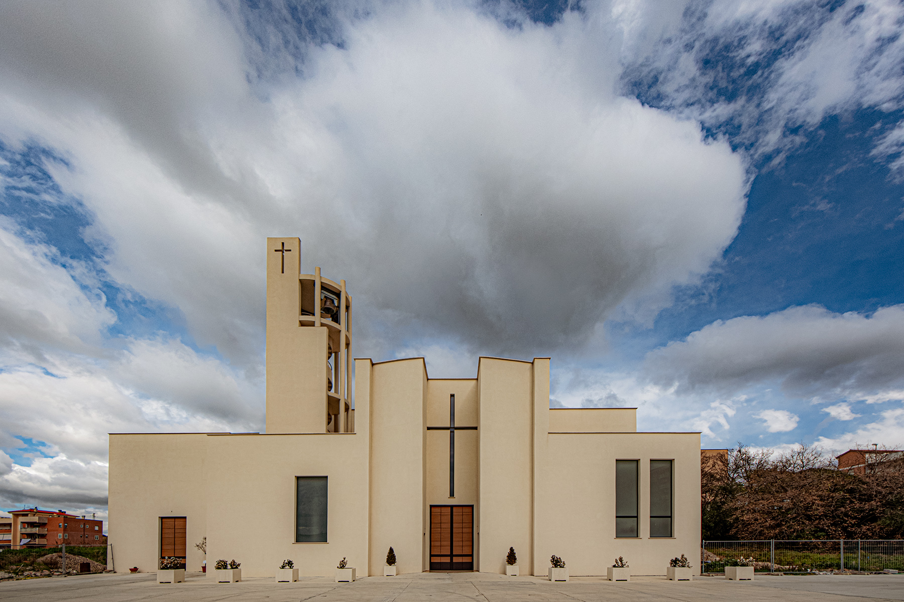 Un ciclone di nuvole sembra abbattersi sulla chiesa. Una costruzione moderna, geometrica, pulita, che hai valorizzato al massimo in questo scatto _________________ Giuseppe |
