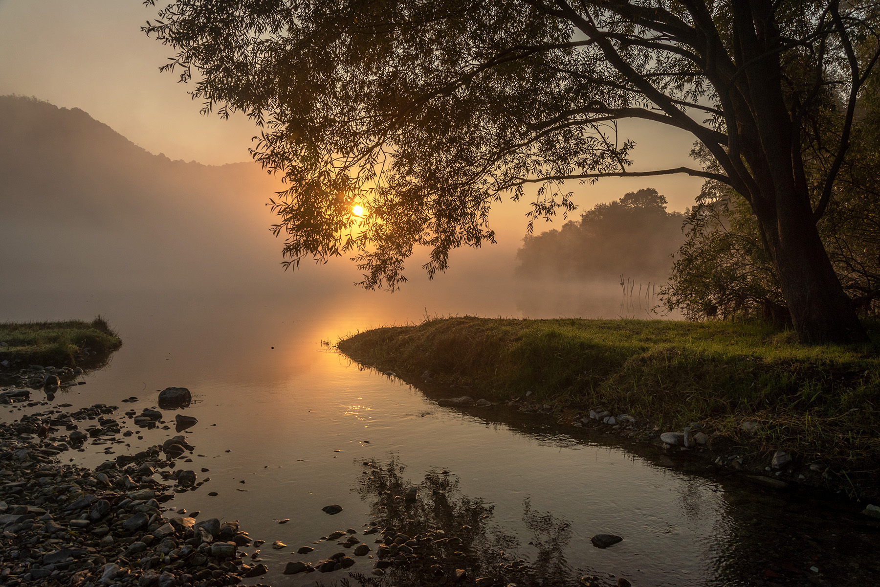 La magia della luce. Armoniosa composizione dove tutte le linee (la lingua di terreno, la riva sassosa, i rami dell'albero) convergono al centro verso il sole. I colori e l'atmosfera concorrono alla bellezza dell'immagine _________________ Giuseppe |