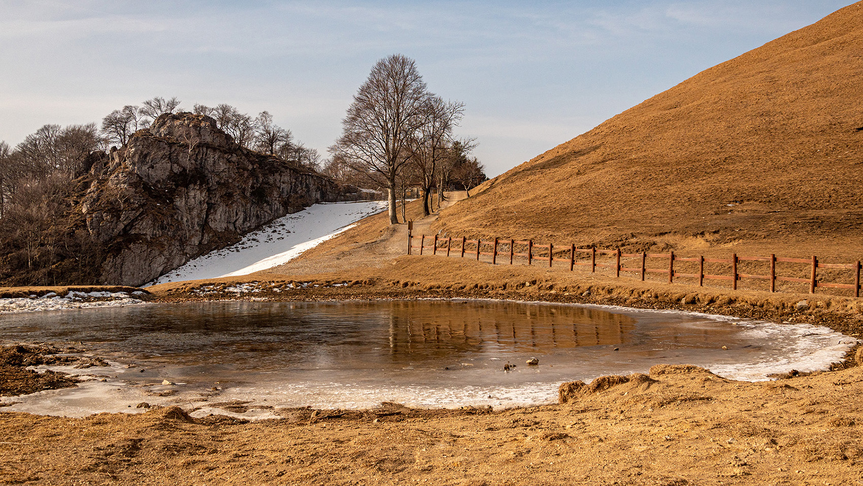 Una bella visione. Mi piace il clima secco, asciutto, dai colori tipici invernali, che si respira. Armoniose sono le linee delle masse e della staccionata, che incastonano l'albero al centro della scena. Il laghetto semighiacciato e con i suoi riflessi contribuisce a valorizzare questo scenario _________________ Giuseppe |