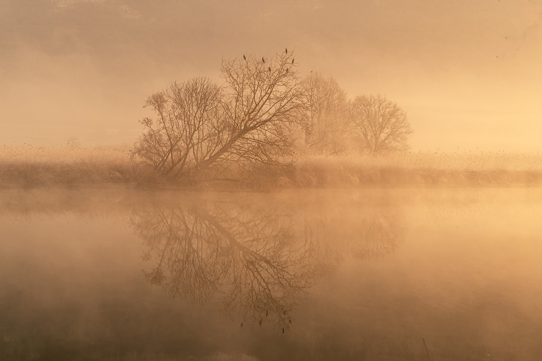 Che dire...davvero meravigliosa! Dall'atmosfera ovattata si stagliano bene i sei uccelli sui rami,ottima anche la specchiatura Complimenti Elis!  _________________ Massimo Facco