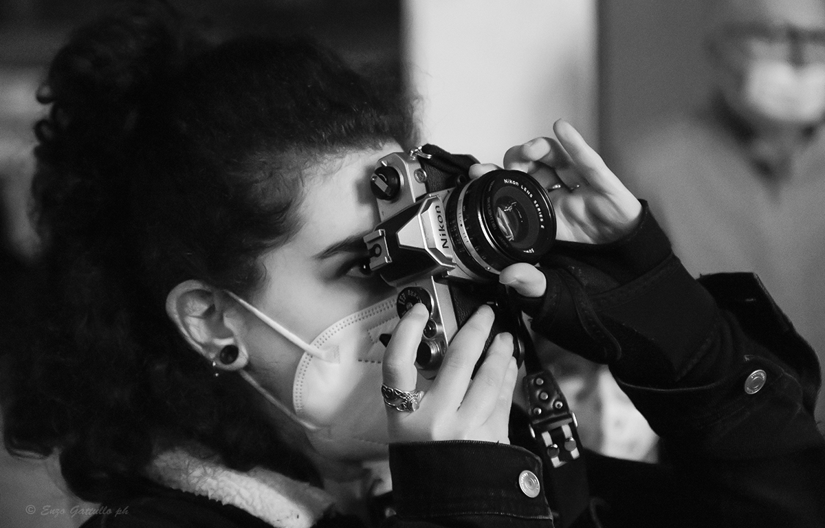 Lo scatto in bianconero, una vecchia Nikon, e uno pensa ad un vecchio scatto. Poi la mascherina ci riporta alla realtà attuale. Ottimo bianconero.