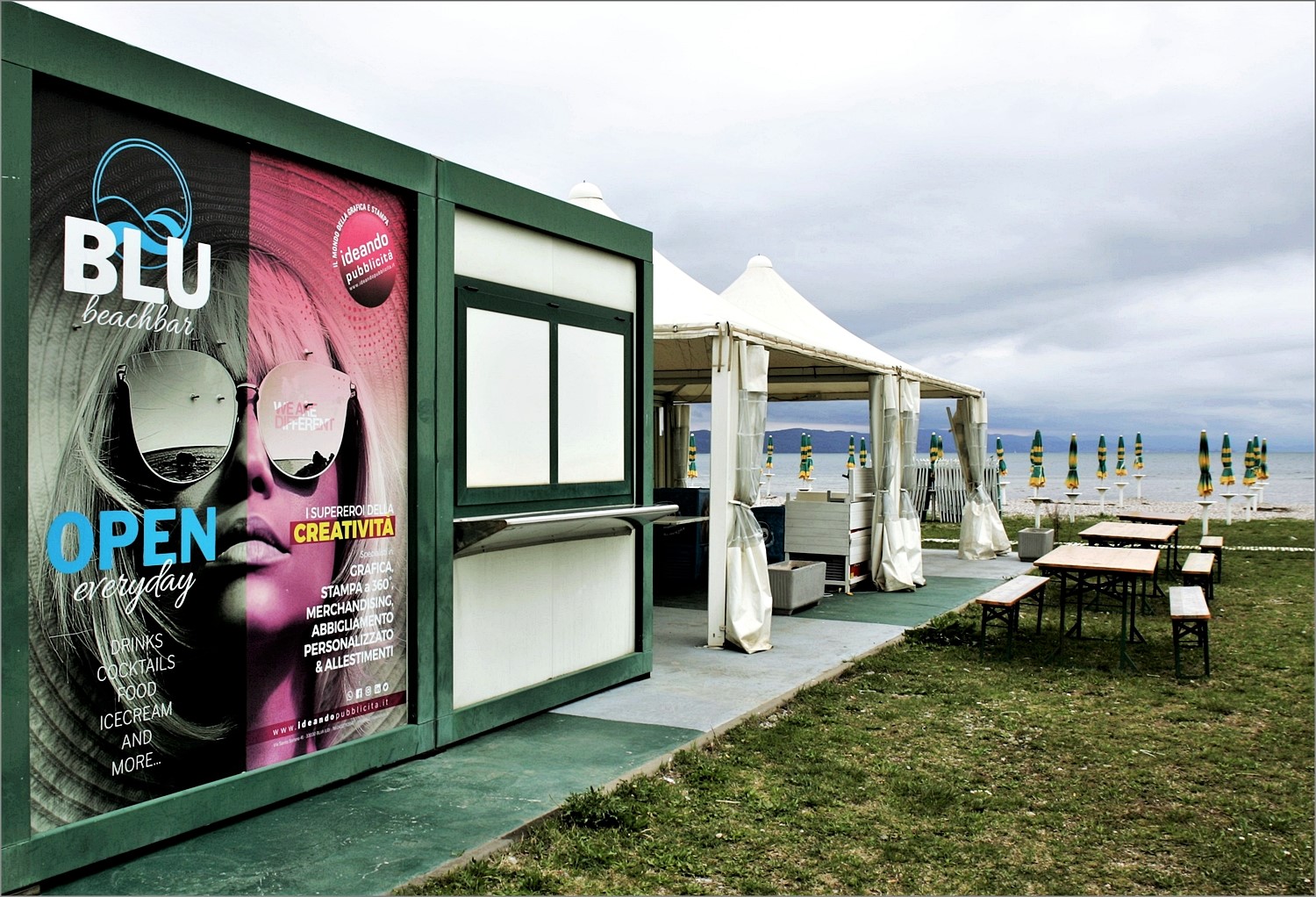 L'interessante e colorato primo piano con le sue diagonali conduce l'occhio attraversando i gazebo e poi gli ombrelloni colorati, sul mare dove l'orizzonte incontra le montagne e un cielo significativo É un bel vedere e l'occhio ringrazia _________________ Giuseppe |