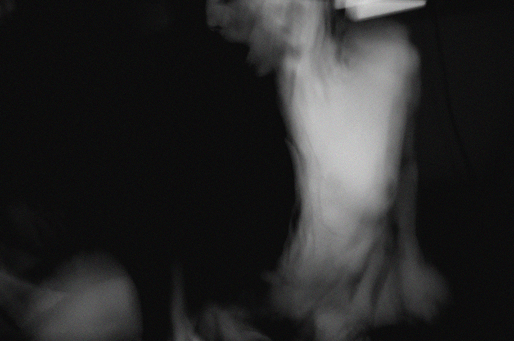 Dal lato grafico, giudicando le fotografie senza tenere presente l’aspetto concettuale, sono un gruppo di fotografie molto molto affini l’una con l’altra. Non sussiste il minimo dubbio che siano un insieme coeso. L’uso del B&N, combinato con una evidente granulosità ed indefinitezza, si accomuna ad una quasi completa assenza di elementi definiti, figure complete e dettagli netti. Ignorando lo statement per alcuni scatti si fatica a percepire immediatamente cosa sia il soggetto. In altri invece ci sono dei dettagli abastanza “presenti” ed esplicativi della situazione. Forse, non ne sono convinto, lo stacco formale fra questi due estremi è un poco troppo netto. Ma sono inezie rispetto all’omogeneità dell’insieme.