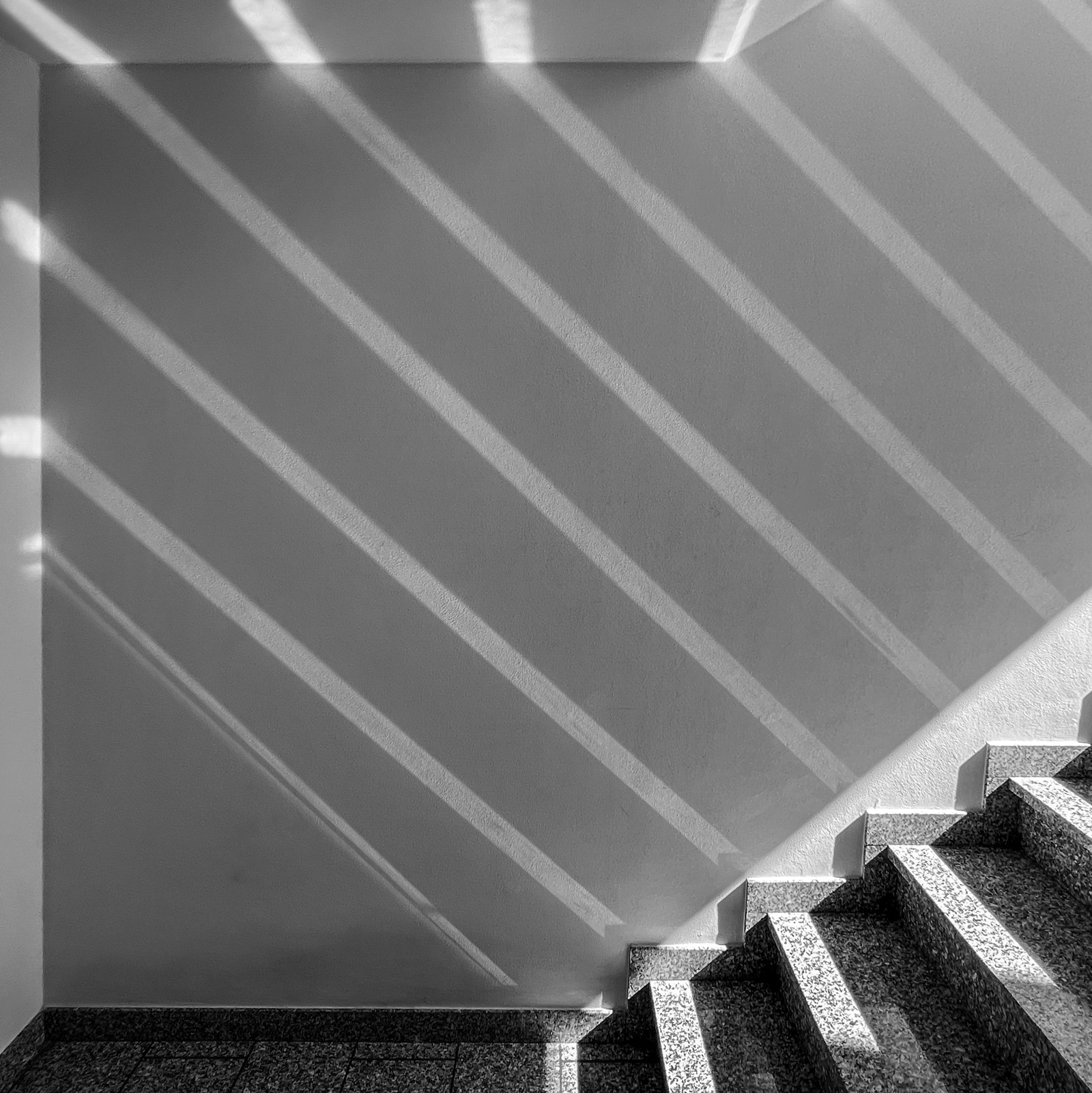 Un rimbalzo di luci che ritma il vano scale con grande maestria geometrica. Molto adatto allo scopo visivo il formato pari lato.