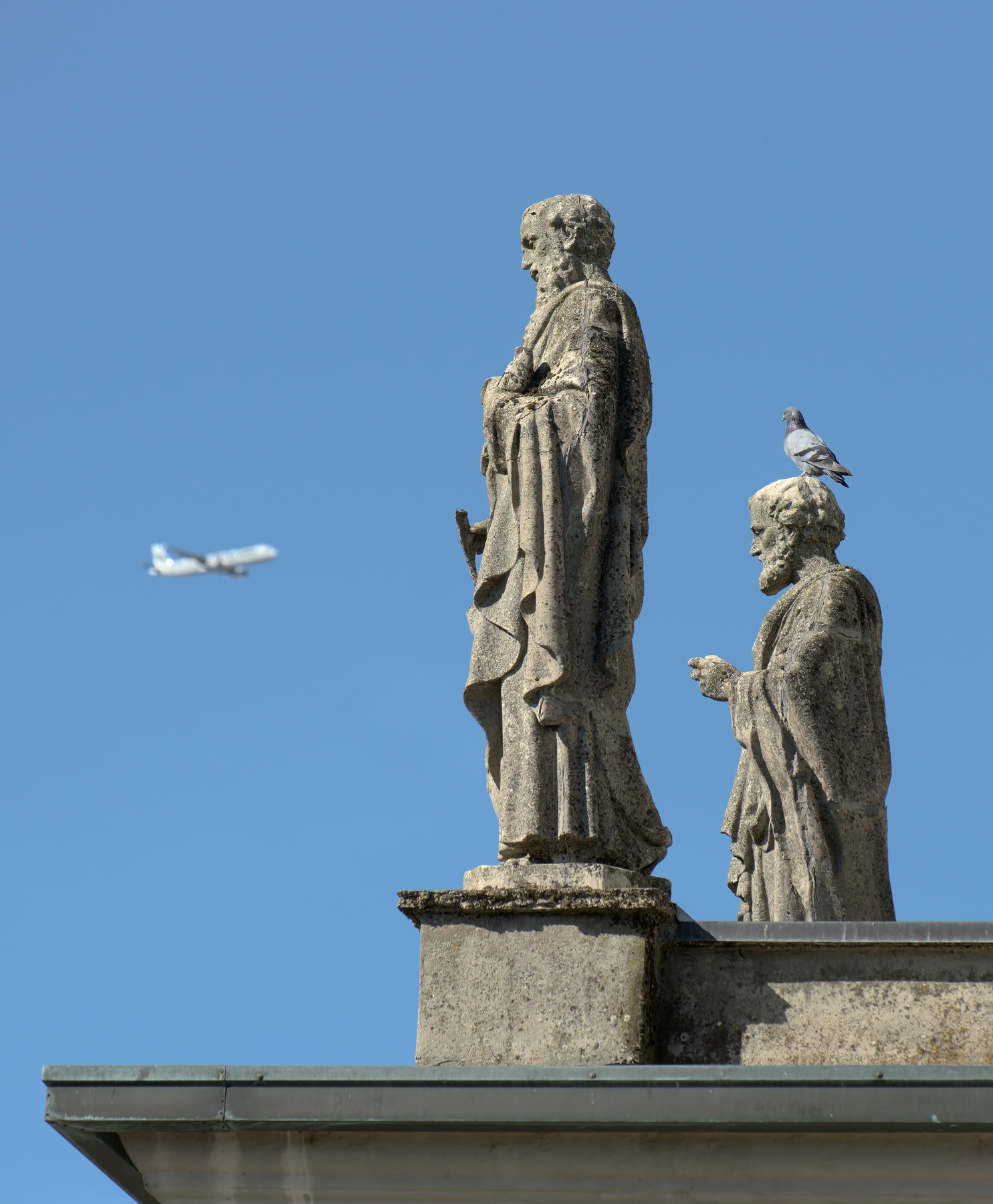 Le statue appaiono preoccupate dall'avvicinarsi del velivolo...
