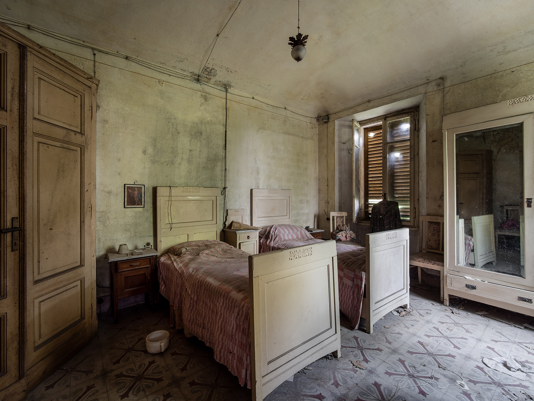 I letti rifatti, l'orinale sul pavimento, il cassetto in cui si intravedono indumenti, il lampadario apparentemente funzionante, la finestra vetusta ma in ordine... è come se gli abitanti fossero usciti al mattino, normalmente e non fossero più rientrati.