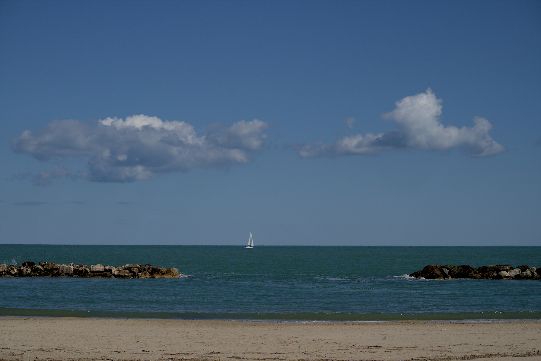 Composizione efficace, vela al centro, frangiflutti e nubi decentrate. Anche questa è Paesaggio, sposto nella sezione corretta.