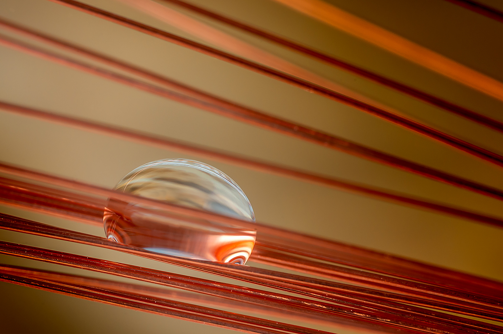 Una prigione letteralmente dorata Buona la composizione, soggetto goccia nel punto forte, precisione nelle giustificazioni 50/50, bene a destra, meno in alto a ax, forse valeva la pena tentare. Il filo che ''taglia'' la goccia lo avrei visto meglio a fuoco per rafforzare il senso di prigione, nel complesso comuncue mi sembra ben realizzata, cosa che non saprei assolutamente fare.