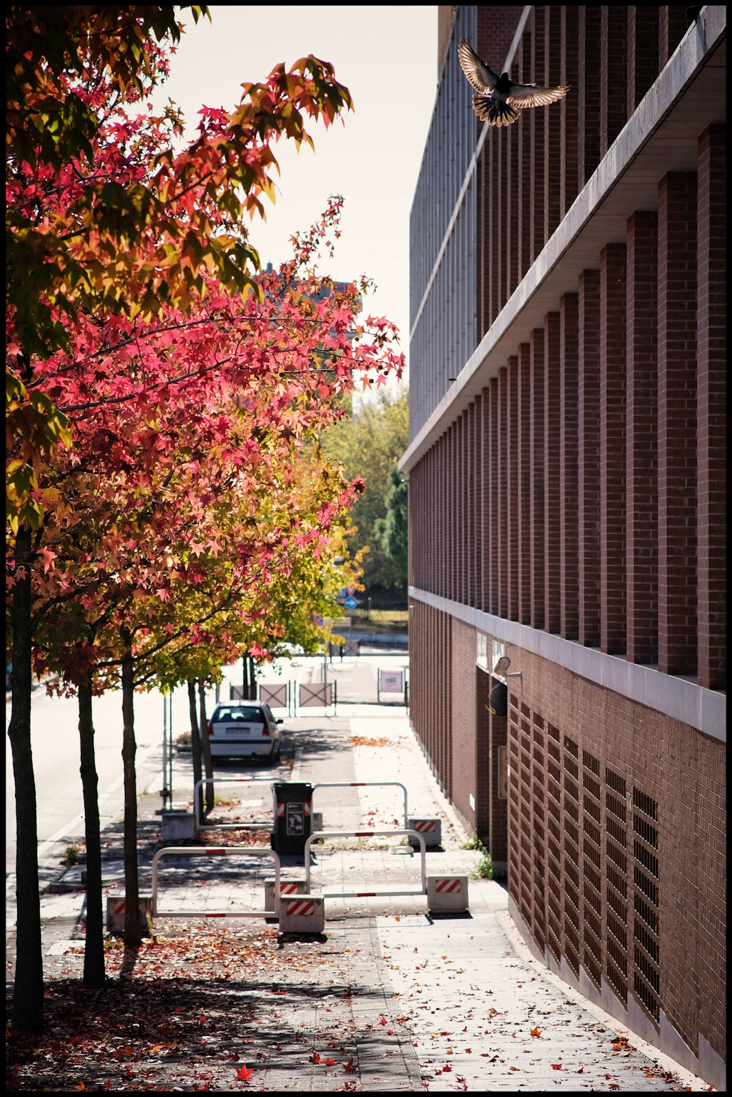 Si, il motivo principale era il filare in veste autunnale che accompagna la facciata laterale dell'edificio accanto. Una sorta di sfida ritmica fra natura e architettura. Il piccione in volo beccato su una linea di costruzione dell'immagine, é stata la ciliegina inaspettata 😎 _________________ "Less is more" - Ludwig Mies van der Rohe