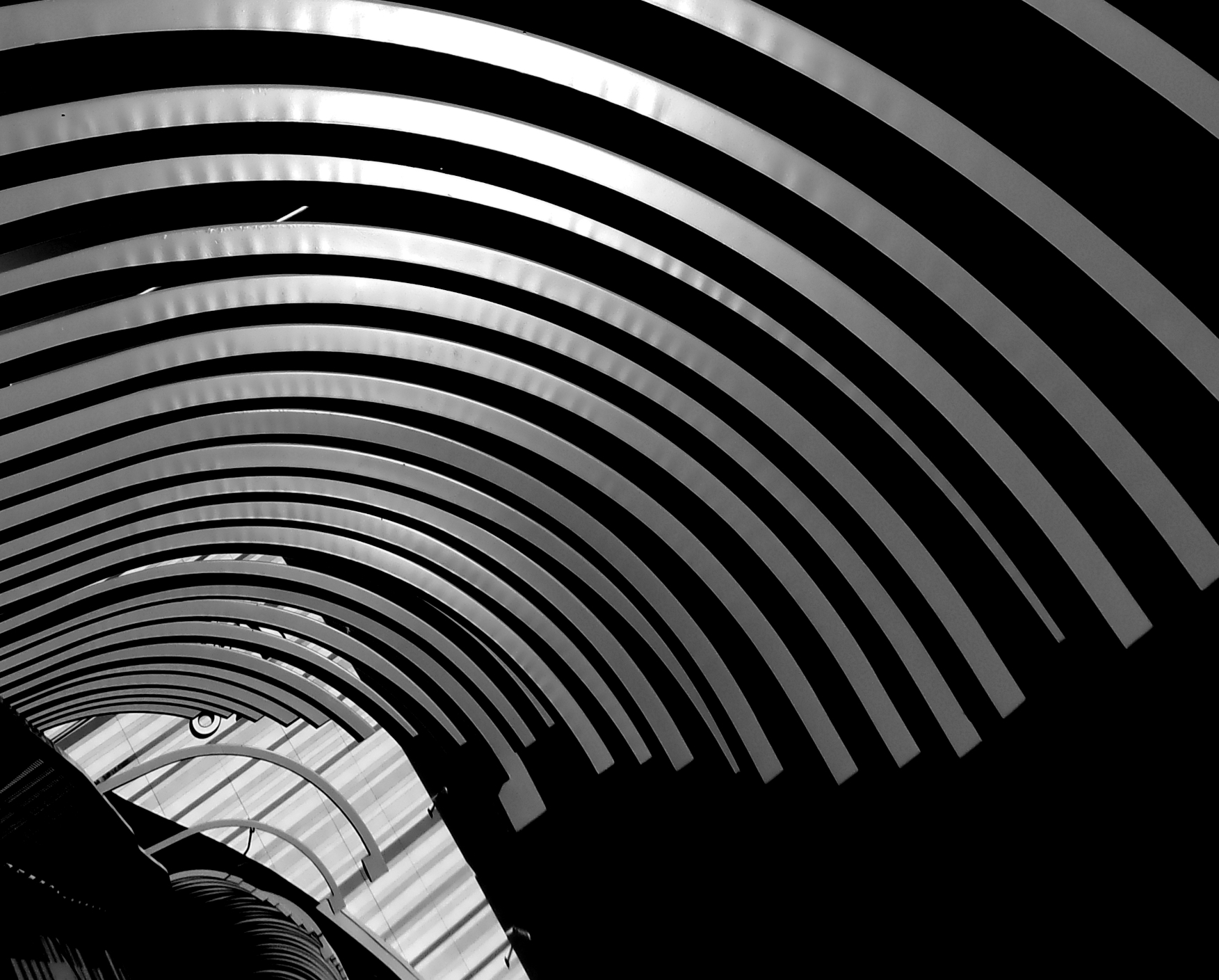 Interessante il susseguirsi di archi concentrici in una struttura di non facile interpretazione. Lo sfondo fa pensare, magari erroneamente, ad una rotazione.