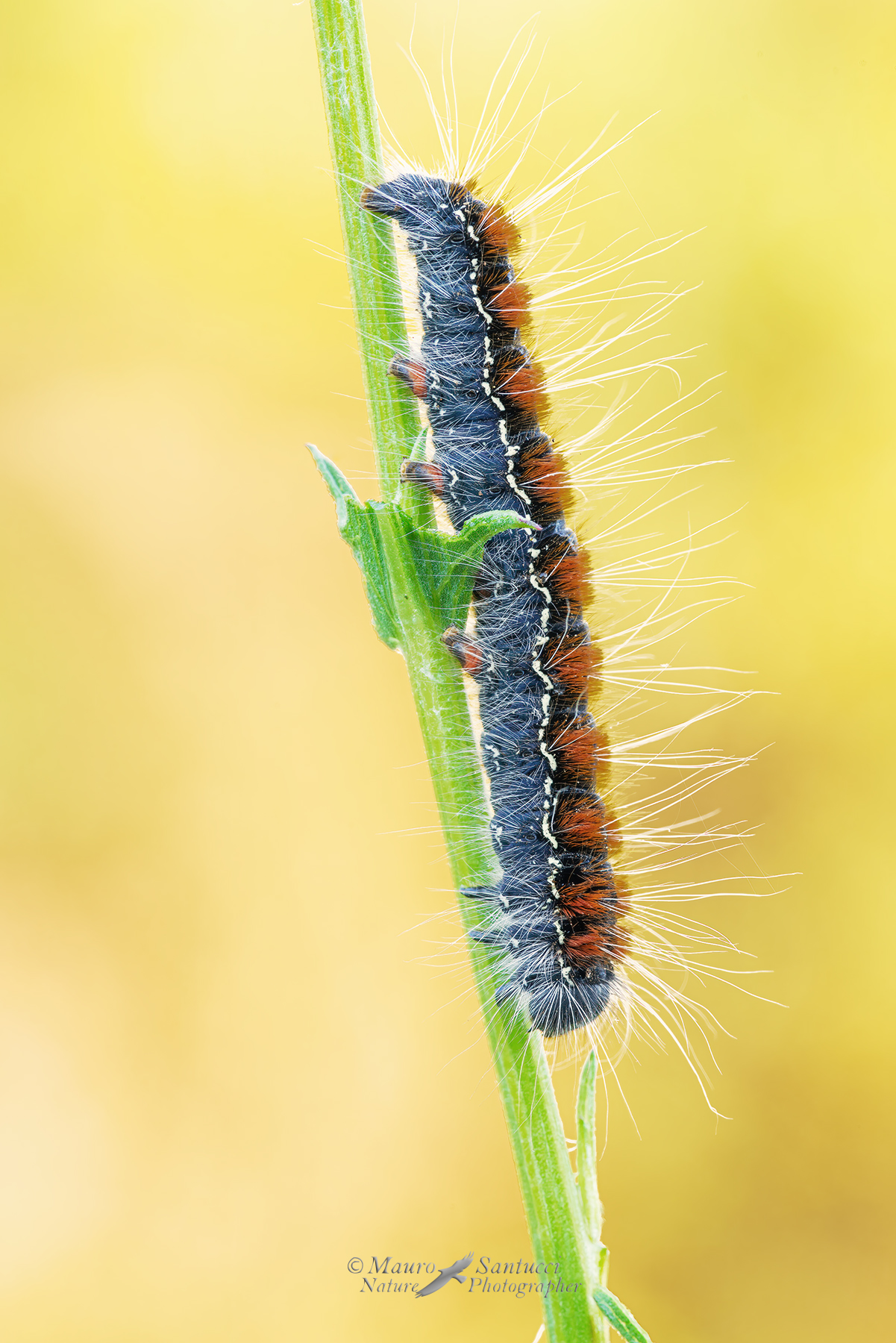 splendida, meraviglia lo sfondo, il giallo permette di fare uscire tutta la bellezza del bruco.