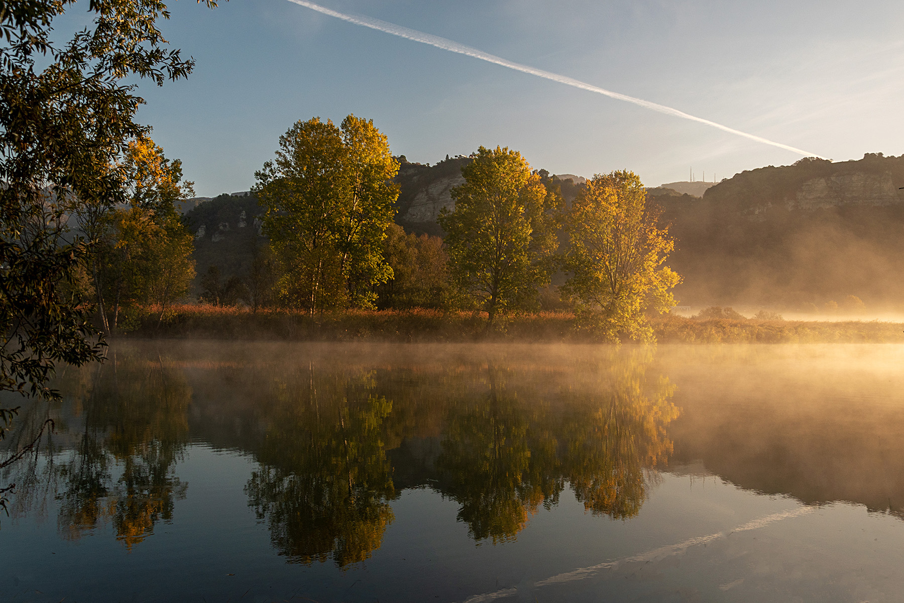 Ottima la luce, gran riflesso, scia in cielo inclusa.