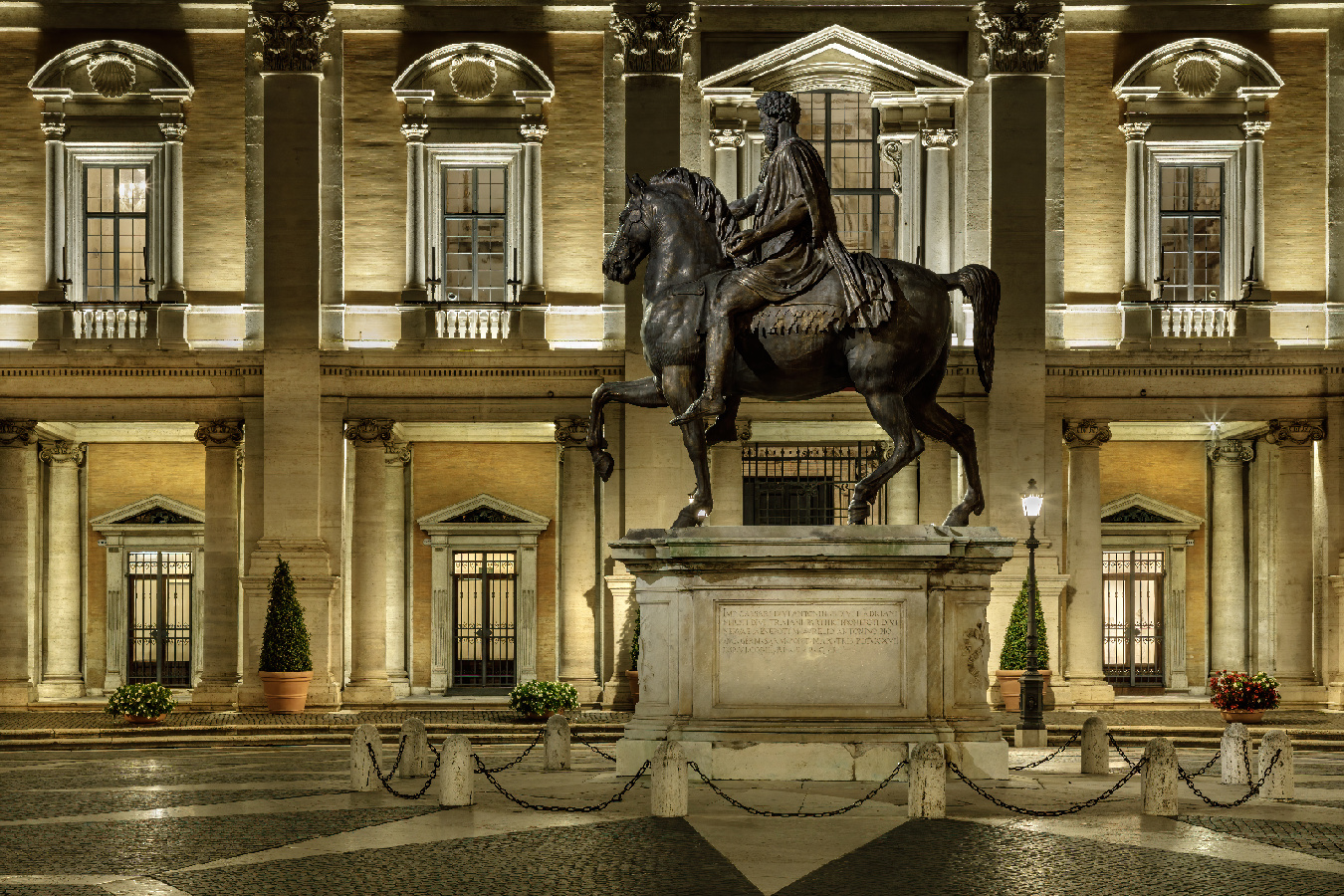 Ottima la scelta di decentrare la statua per mantenere la simmetria dell'edificio.
