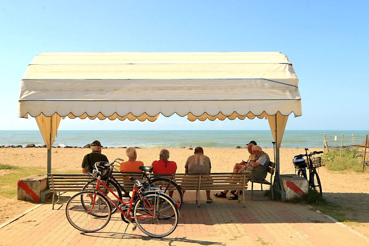 Un bel quadretto in relax con vista mare. Nonostante la luce dura di mezzogiorno, esposizione gestita bene. L'accostamento delle persone con le biciclette, oltre a dare maggior valore allo scatto, ci fa pensare, alla voglia dei nostri non più giovani uomini di fare un po di sport. I colori sono caldi, lo scatto è curato, la scena è gradevole. Mi piace _________________ Giuseppe |