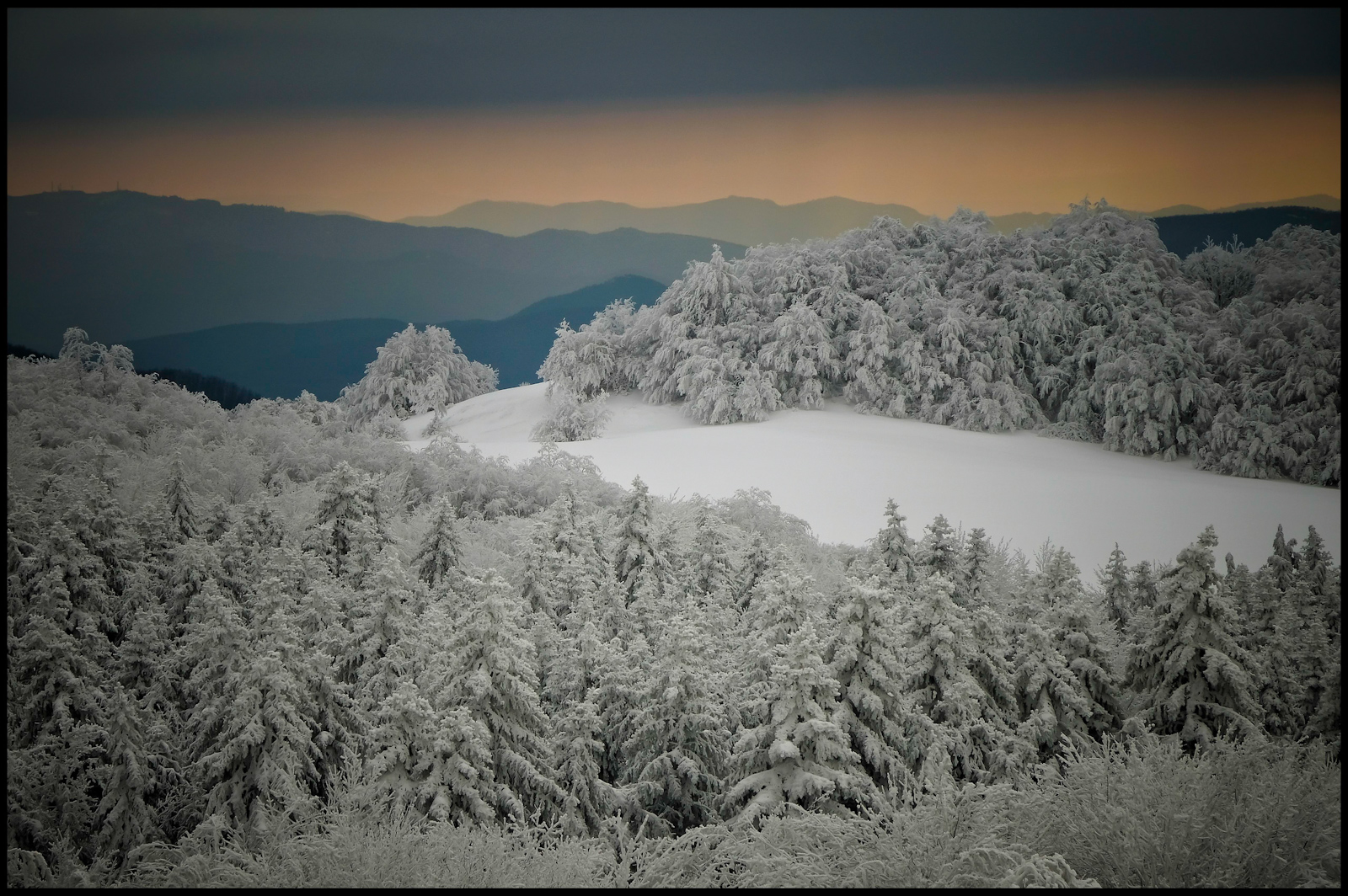 Un immagine molto delicata, la tenue luce non da troppo risalto al bianco delle neve che di conseguenza non prevarica nettamente le altre tonalità presenti nello scatto, c'è al contrario un buon bilanciamento, forse solo la fascia molto scura a chiusura del frame è un filo invasiva.