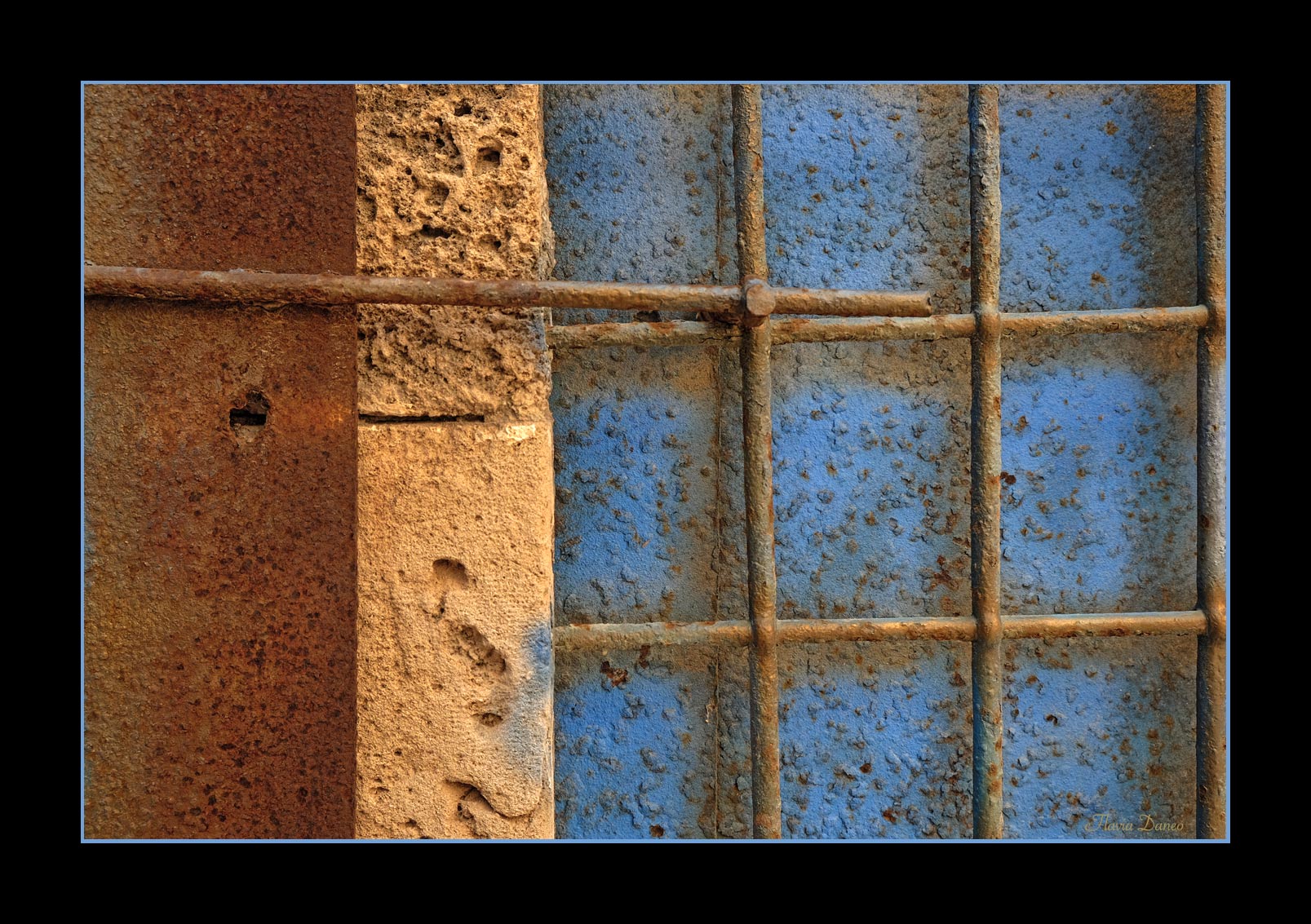 un cielo che non è cielo, una grata ed un muro. Il gioco cromatico è ottimo cosi' come il dettaglio.