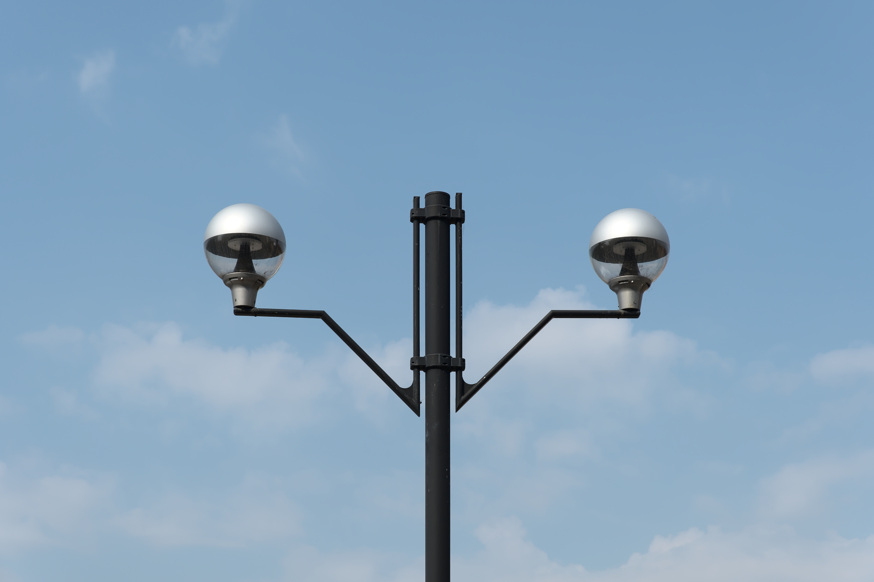 Un lampione visto come una bilancia, come un elemento che equilibria e soppesa perfettamente alla pari destra e sinistra, pesi e forme.