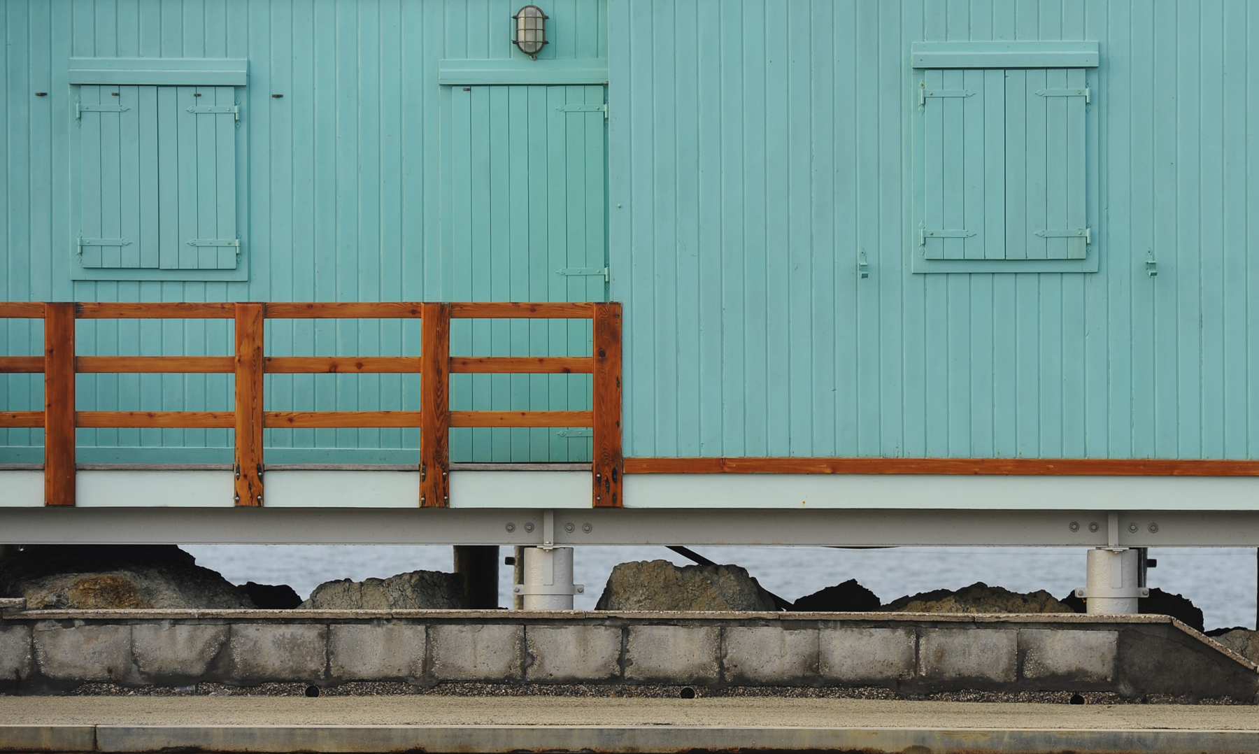 Mi piace il contrasto cromatico legno / parete azzurra.