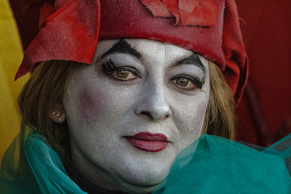 Un ritratto gradevole ma, a mio avviso, sottoesposto ( immagino che il trucco del volto fosse bianco e non grigio).