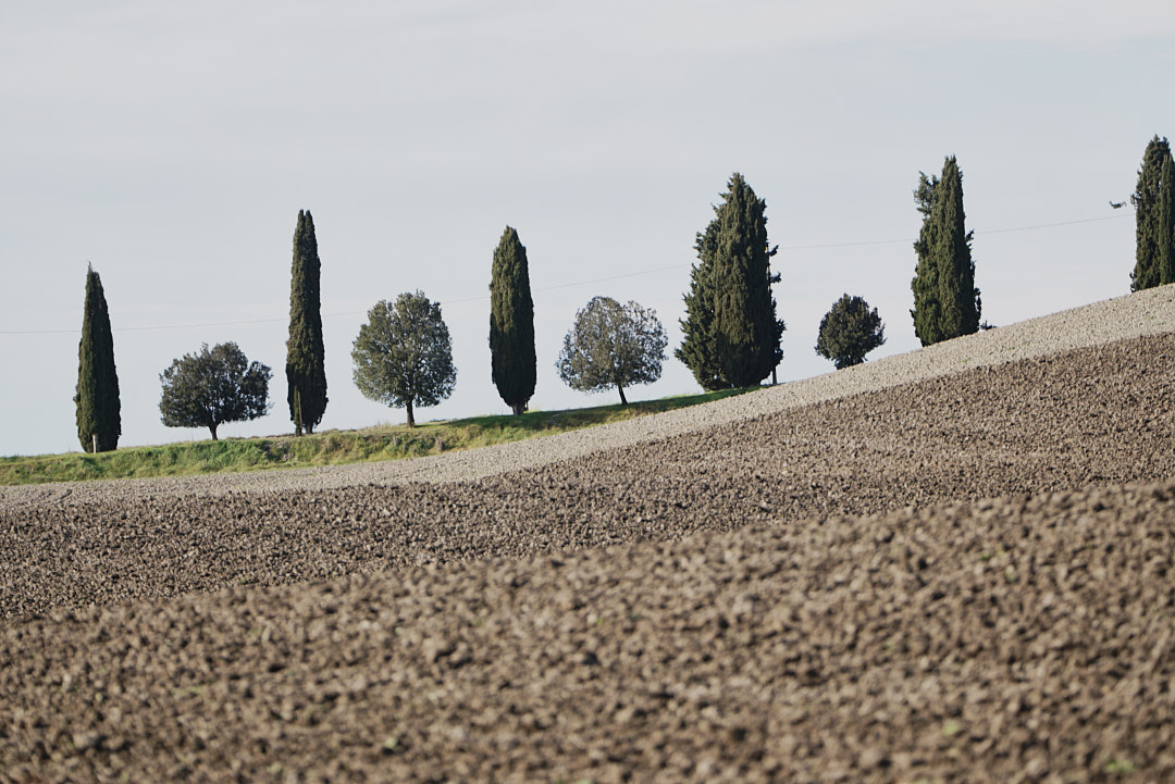 Il punto di ripresa che "sgrana" la presenza alternata degli alberi è il fulcro di questa immagine.